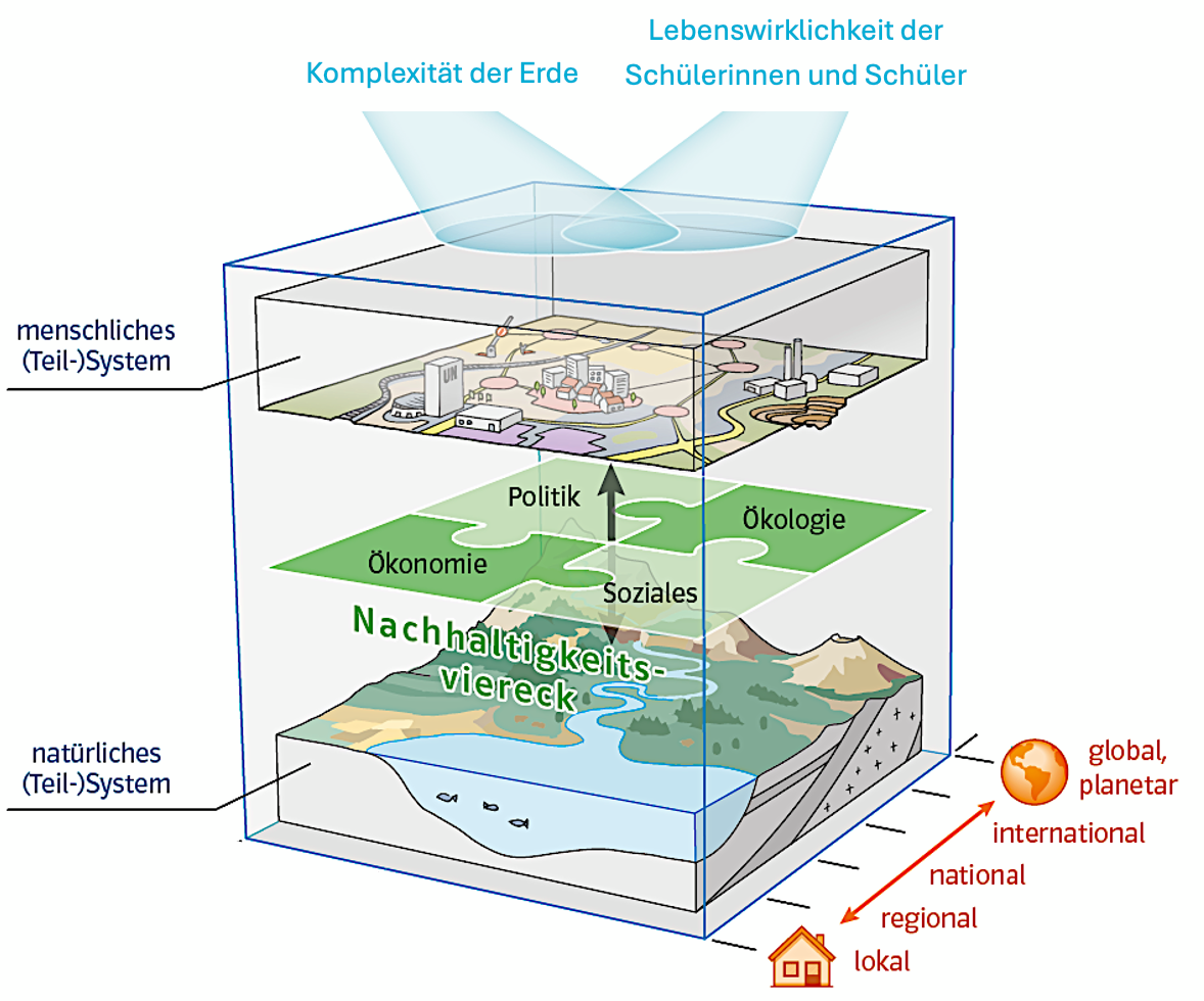 Durch die Kombination geographischen Wissens mit Kenntnissen aus naturwissenschaftlichen und anderen gesellschaftswissenschaftlichen Fächern werden die Schüler zum Denken in Zusammenhängen erzogen und lernen über die Fachgrenzen hinweg, eigene, begründete Standpunkte zu beziehen.