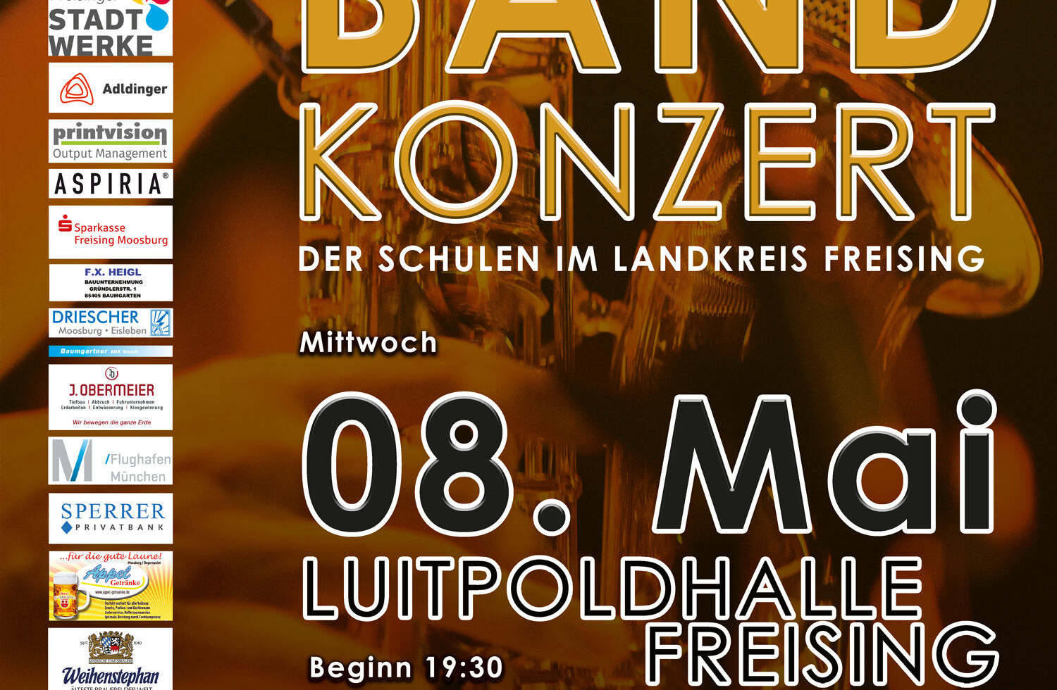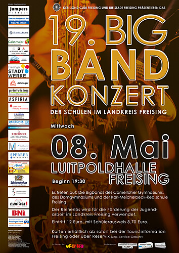 Herzliche Einladung zum 19. Bigband-Konzert der Schulen im Lkr. Freising am Mittwoch, 8. Mai!