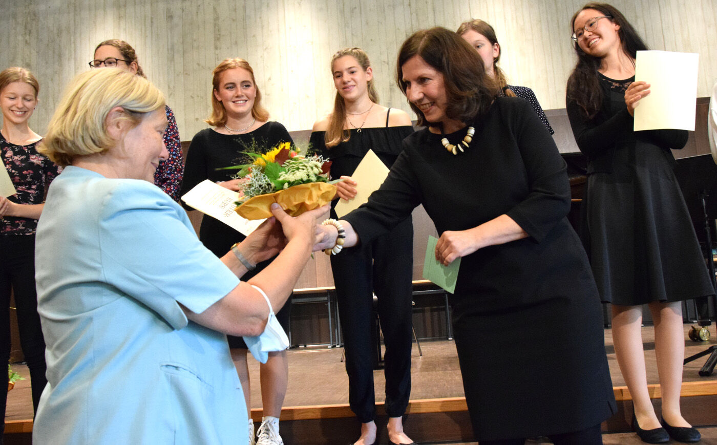 Die Freisinger Stadträtin Maria Lintl hatte vor vielen Jahren die Idee zu diesem Meisterkurs, ist nach wie vor der treibende Motor und kümmert sich vor allem um die Finanzierung. Sie bedankte sich nicht nur bei den Kursteilnehmern, die ihre Ferien darauf verwendet hatten, um sich auf den Meisterkurs intensiv vorzubereiten, sondern auch bei allen Organisatoren, besonders bei Andrea Bliese, Schulleiterin des Camerloher-Gymnasiums. Das Abschlusskonzert, so Lintl, am „seidenen Faden“ gehangen. Andrea Bliese habe dann mit allen notwendigen Hygieneauflagen (3 G Regel) das Konzert noch möglich gemacht. Der Meisterkurs wird in Kooperation zwischen dem Camerloher-Gymnasium und der Städtischen Musikschule Freising organisiert. Lintl bedankte sich bei Sebastian Brand (Fachschaftsleiter Musik am Camerloher) und Odilo Zapf (Leiter der Städtischen Musikschule), und natürlich bei Professor Ulrich Vogel (Hochschule für Musik Franz Liszt Weimar) und Franz Scheuerer (Symphonieorchester des Bayerischen Rundfunks).