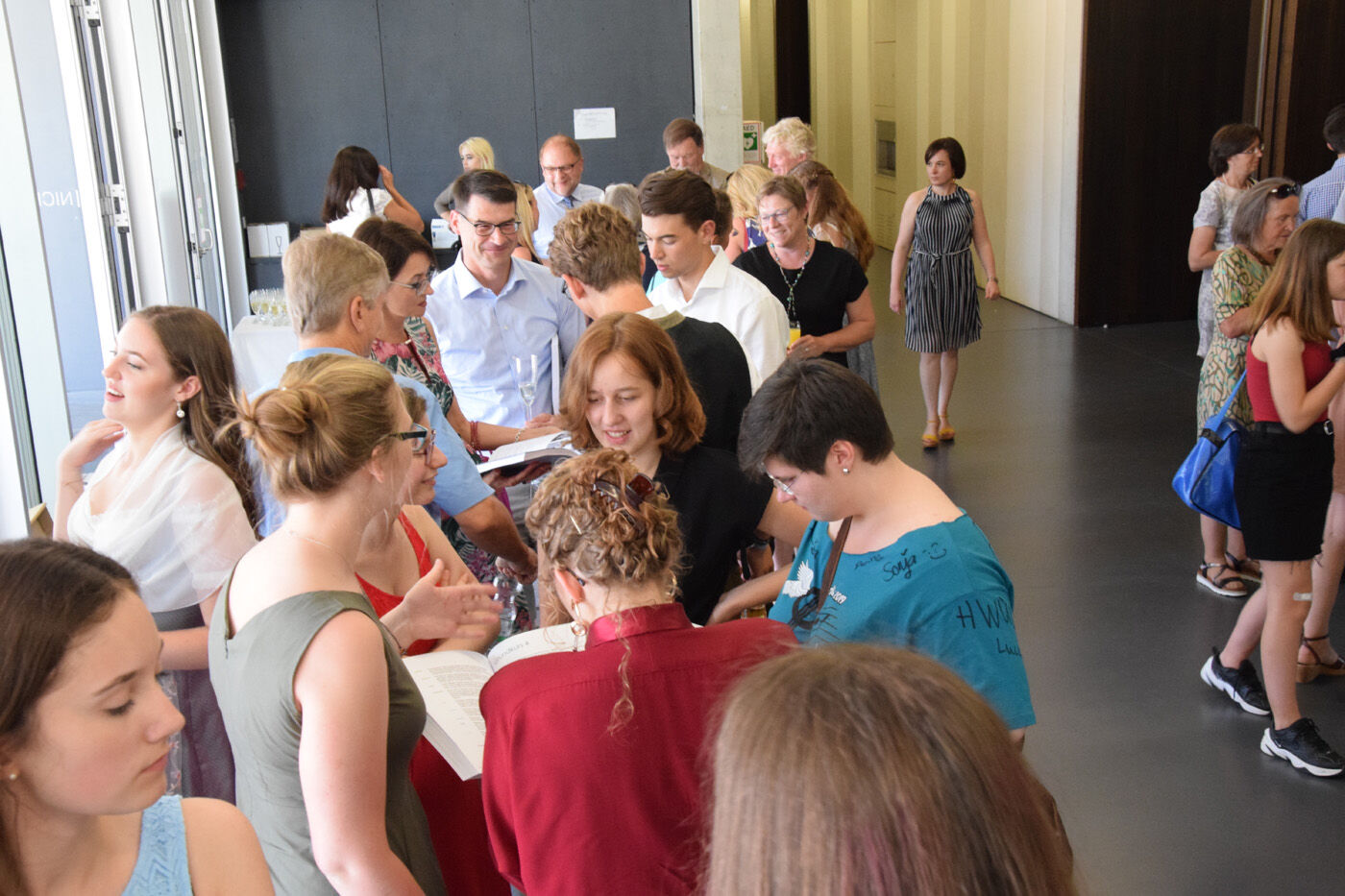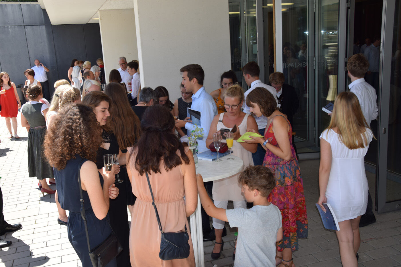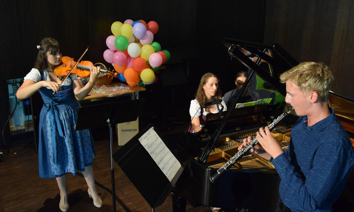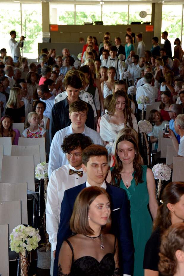 Für die nötige musikalische Umrahmung der Zeugnisvergabe hatte die Absolvia selber gesorgt. Neben dem Abisong von den 99 Luftballons trat das Blechbläserensemble unter der Leitung von Gunther Fendler auf. Cordla Kraetzl und Clara Eglhuber unterhielten mit Scott Joplins „Original Rags“, Matthias Melzer, Rosa Matos Mendoza und Katja Polz mit „I Prelude“ und IV Walzer“ von Dimitri Schostakowitsch und Gabriel Rupp mit der Arie „Brindisi“ von Verdi. Die Absolvia entließ das Publikum mit dem gemeinsamen Lied „Viva La Vida“ von Coldplay. sp
