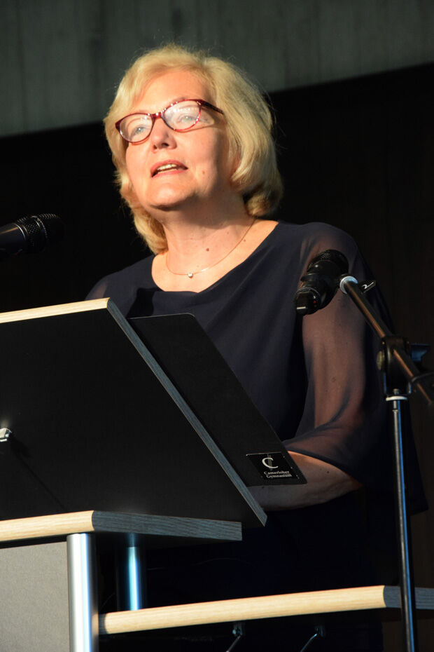 Für Bürgermeisterin Eva Bönig ist der Nena-Song von den 99 Luftballons auch eine Metapher gegen Krieg und Terror. Die Luftballons stünden aber auch, so Bönig, für Leichtigkeit und damit auch für Wünsche und Träume. Bönig gratulierte der Absolvia für das bestandene Abitur und lobte das politische Engagement der Jugend: „Ihr seid Teil einer unabhängigen, nachdenkenden Generation: Ihr seid die Zukunft.“
