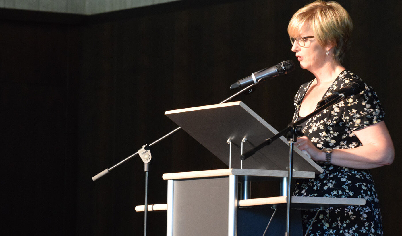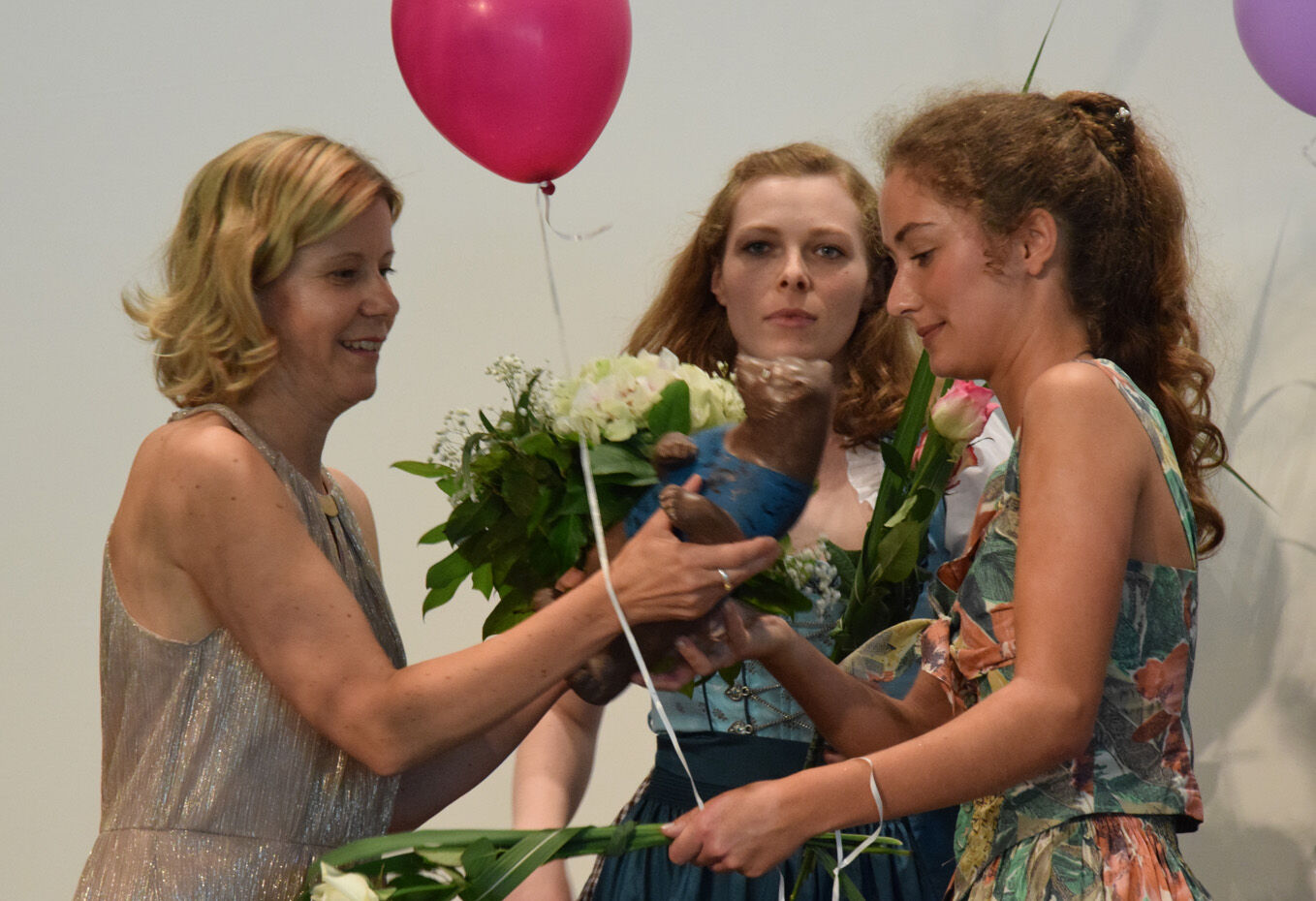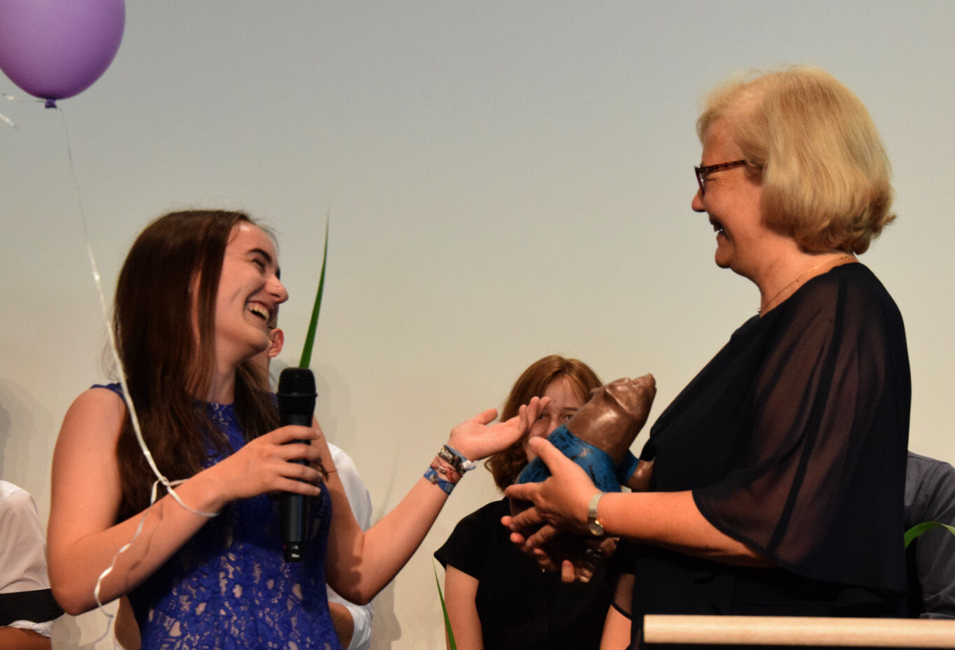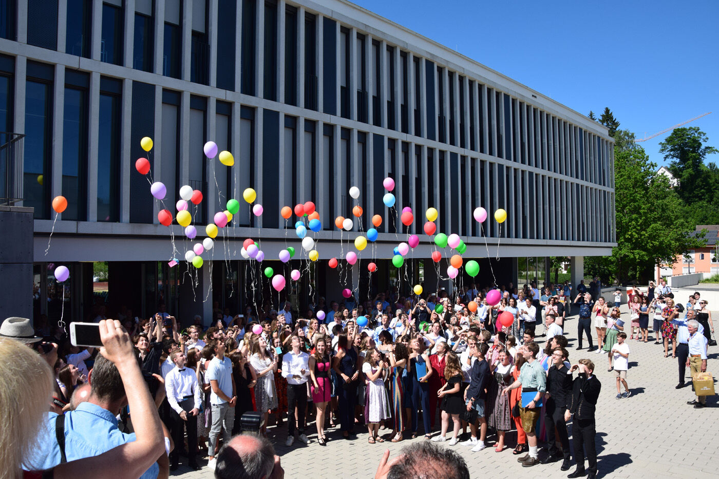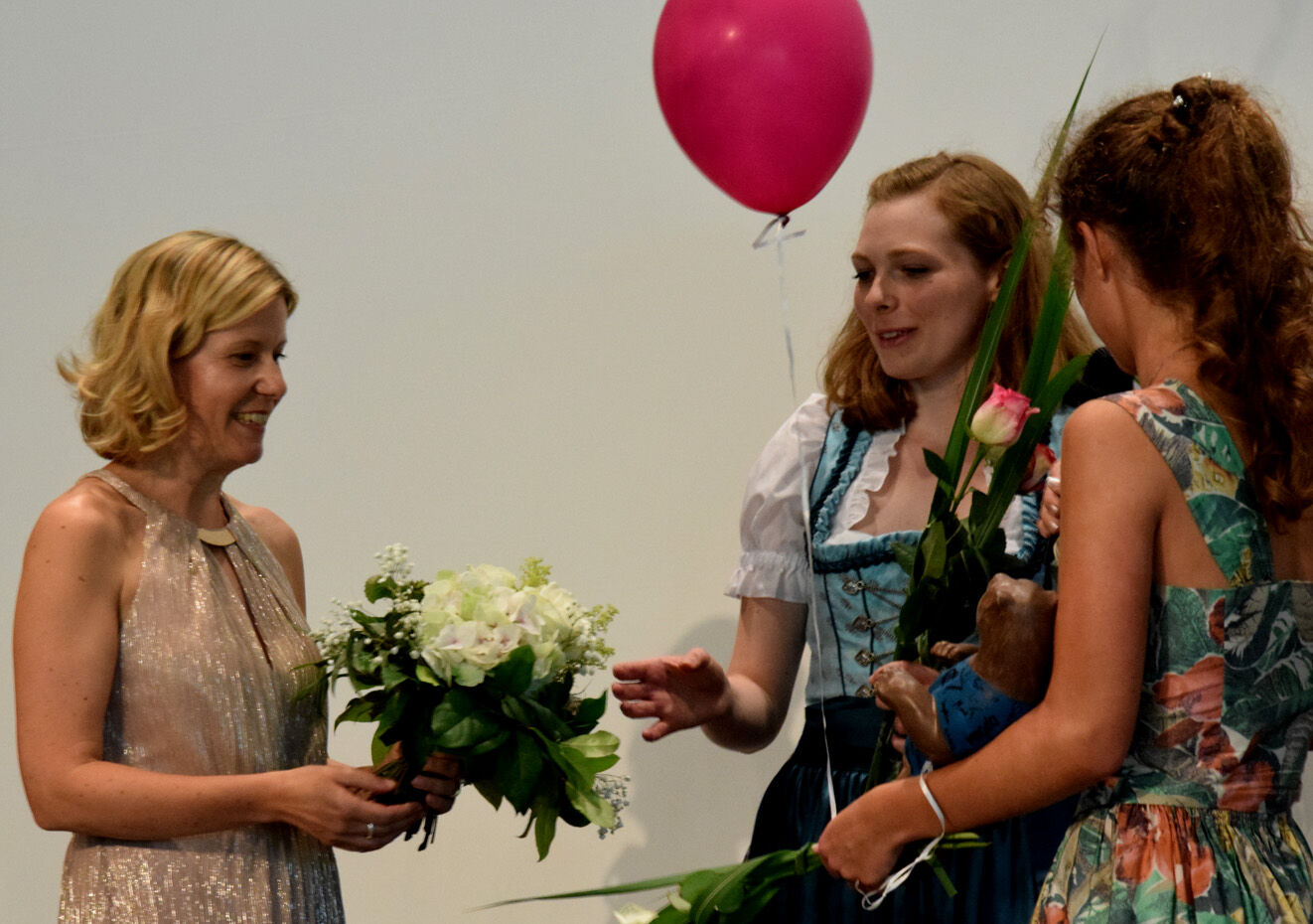 Schulleiterin Andrea Bliese blickte in ihrer Rede auf ihre eigene Abiturzeit zurück und griff dabei die Luftballon-Metapher auf. Man habe in dieser Zeit nach dem bestandenen Abitur das „Gefühl der unglaublichen Freiheit“. Alles sei möglich nach dem Abitur. Denn das Motto „Ab in die Welt“ heiße zugleich auch „Ab in die Freiheit“. Bliese forderte die Absolvia in diesem Zusammenhang freilich auch auf, sich für eine freie und gerechte Gesellschaft einzusetzen und erinnerte an den Besuch von Charlotte Knobloch in diesem Schuljahr am Camerloher. Andrea Bliese dankte Eltern und Lehrkräften für die Begleitung der Absolvia auf ihrem Weg zum erfolgreichen Abitur. Und das kann sich heuer in der Tat sehen lassen. Die Schulleiterin konnte stolz einen Notenschnitt von 2,14 verkünden, darunter zwei Mal die Traumnot von 1,0, zwei Mal 1,1 und 5 Mal 1,2. Insgesamt stand 37 Mal eine Eins vor dem Komma.