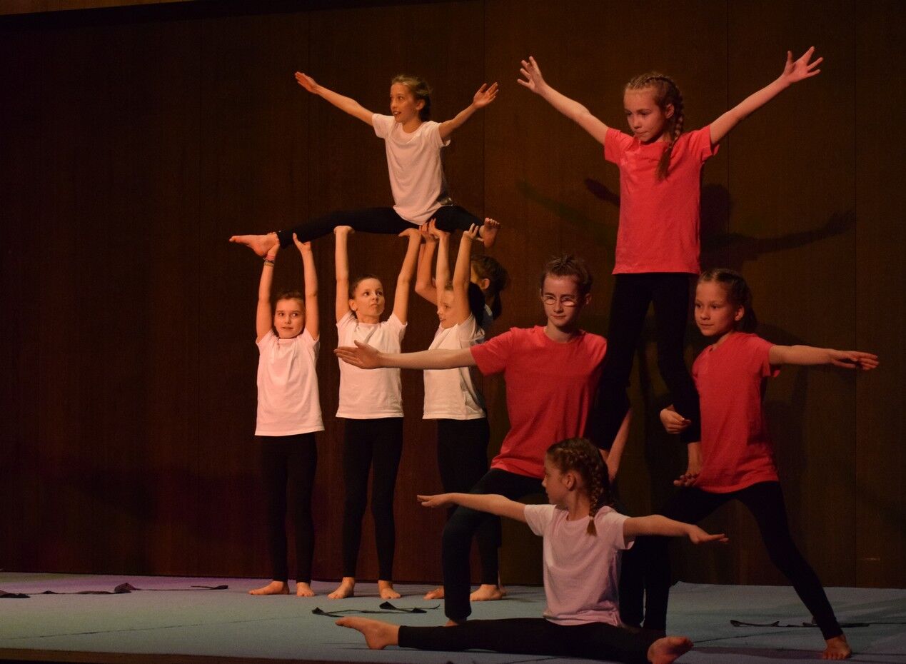 Davon konnten sich die vielen Zuschauer am vergangenen Mittwoch (20.3.2019) und Donnerstag (21.3.2019) überzeugen. Die Kostüme der jungen Sportlerinnen und Sportler passten zu jeder Nummer, beispielsweise bei der letzten Nummer. Der AK Akrobatik präsentierte spektakuläre Menschenpyramiden, und die blauen Kostüme erinnerten an die alten Ägypter. Neben verschiedenen Tänzen begeisterte die Einradnummer genauso wie die perfekt gestaltete asiatische Stockkampf-Nummer im Schwarzlicht.