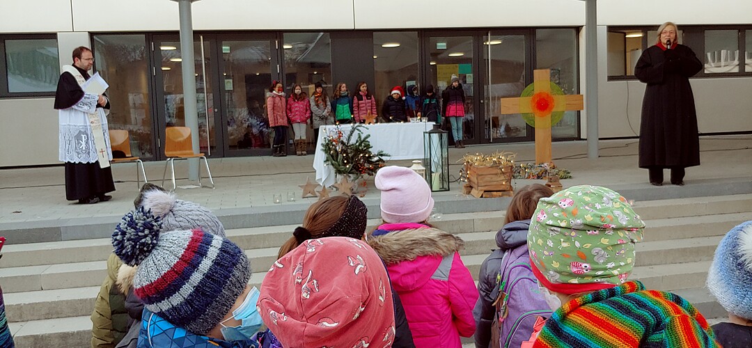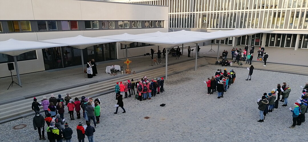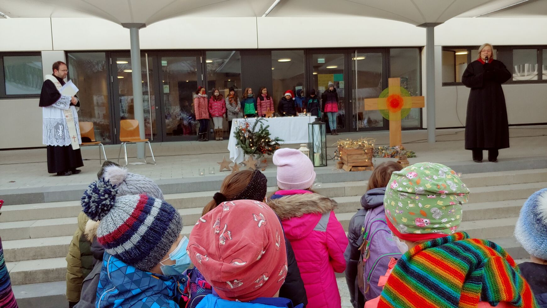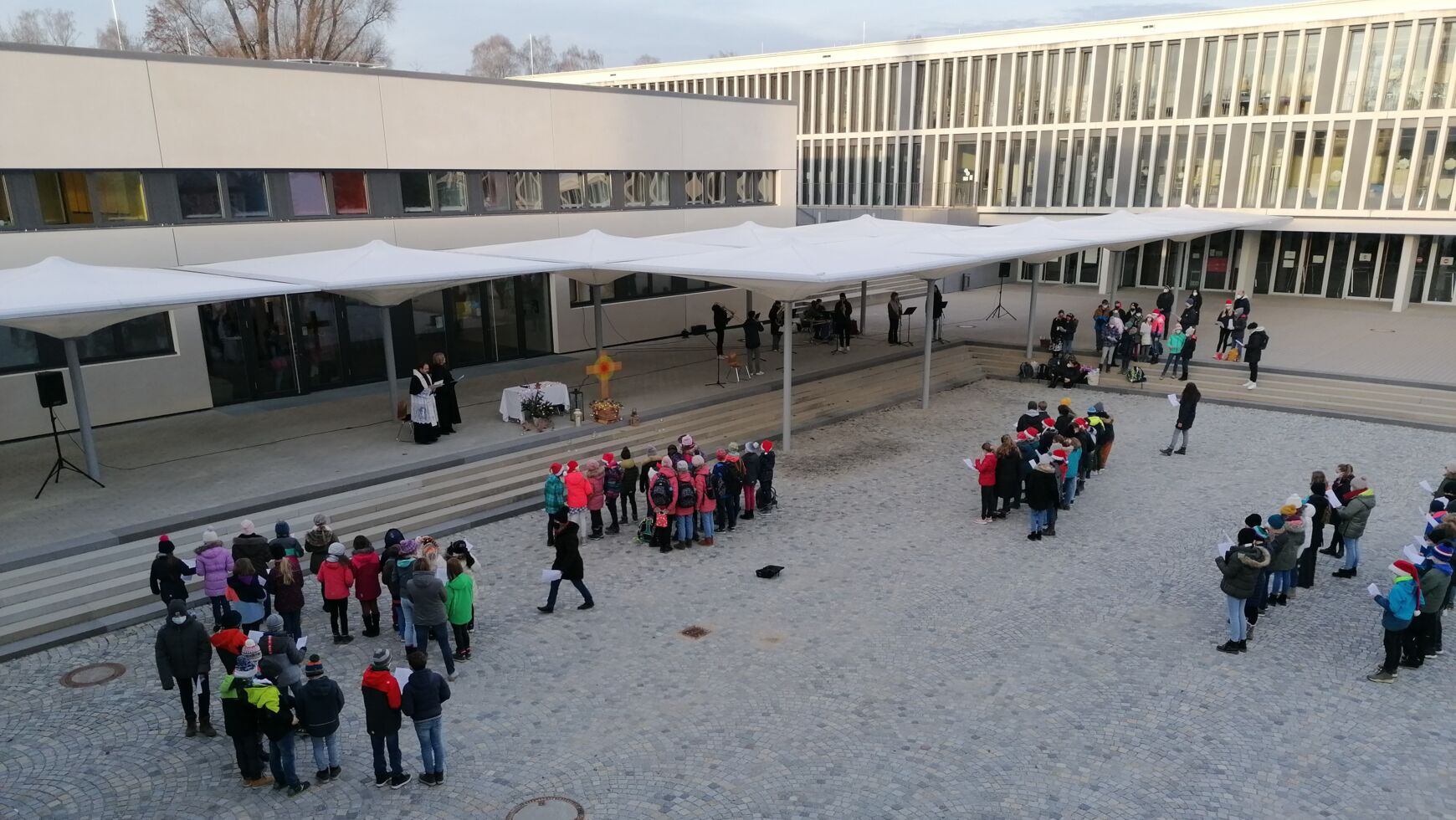 Am letzten Schultag vor Weihnachten stimmte sich die Camerlohergemeinschaft mit einem adventlichen, stimmungsvollen Gottesdienst im Schulhof – zwar bei Eiseskälte, aber bei bester Stimmung – auf Weihnachten ein. Schulleiterin und Prädikantin Frau Bliese und Pfarrer Rauscher zelebrierten den Gottesdienst.