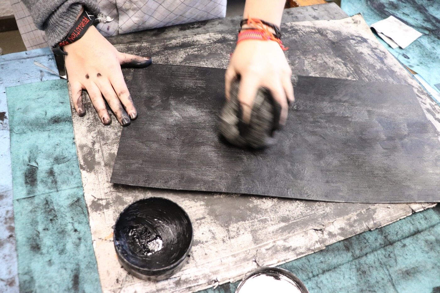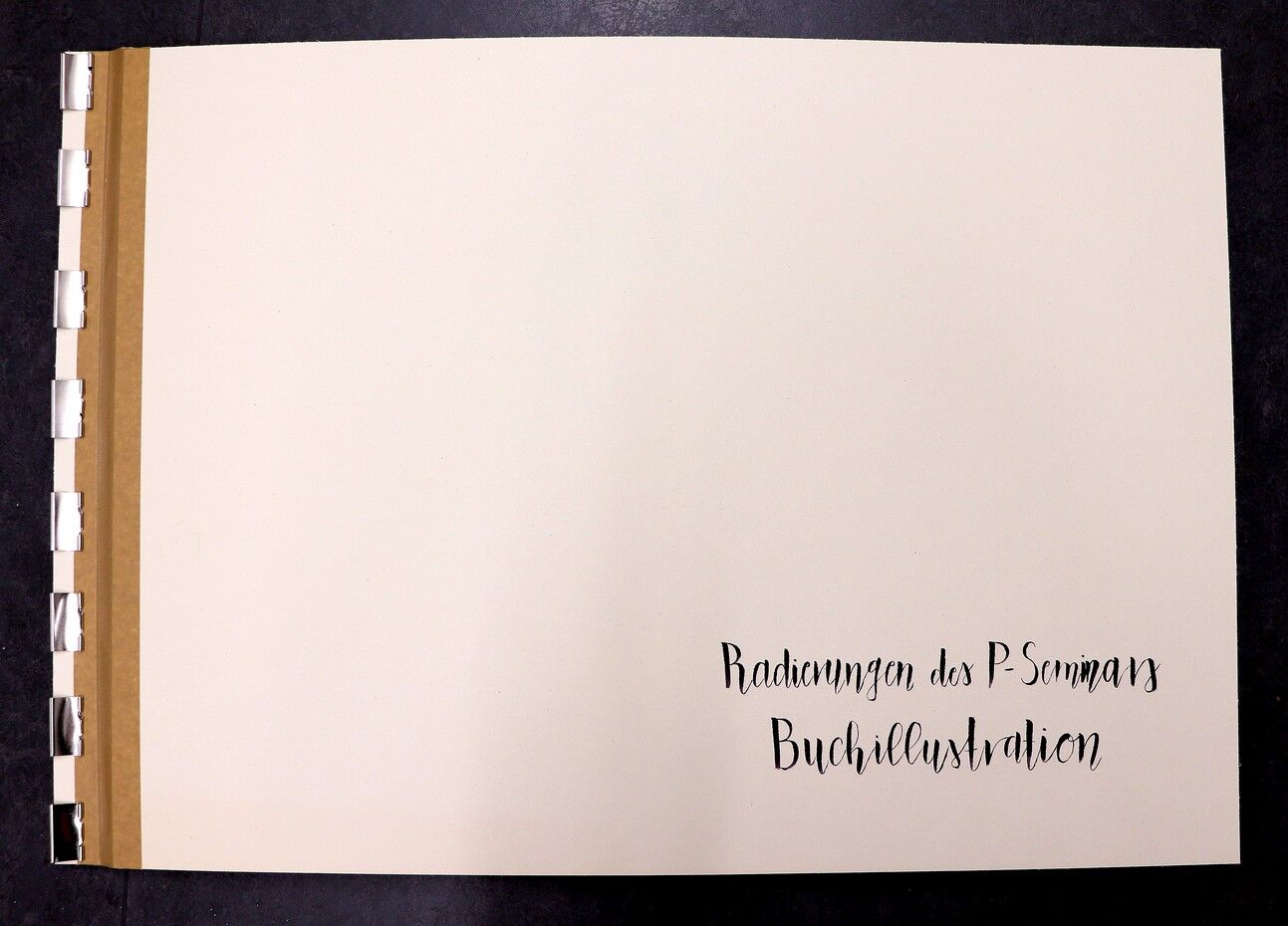 Bezüglich der künstlerischen Umsetzung entschied sich das Seminar für eine aufwändige Drucktechnik, die Kaltnadelradierung. Dabei wurden sowohl die gewählten Texte gestalterisch umgesetzt als auch die Bildentwürfe. Teilweise verbinden sich dabei die Worte mit den Grafiken, teilweise stehen sie ergänzend zusammen. Die Arbeit mit der Radiernadel auf ungewöhnlich großen Druckplatten stellte eine große Herausforderung für dieIllustratoren dar, ebenso wie das spiegelverkehrte Arbeiten, damit die Bilder und Texte nach dem Druckvorgang richtig herum erscheinen. Auch das Drucken in der Tiefdruckpresse auf den sehr großformatigen feuchten Büttenpapierbögen entpuppte sich als sehr anspruchsvolle Aufgabe. Dass die Hände und Fingernägel während der monatelangen Druckphase konstant schwarze Spuren aufwiesen, nahmen die IllustratorInnen gelassen hin.