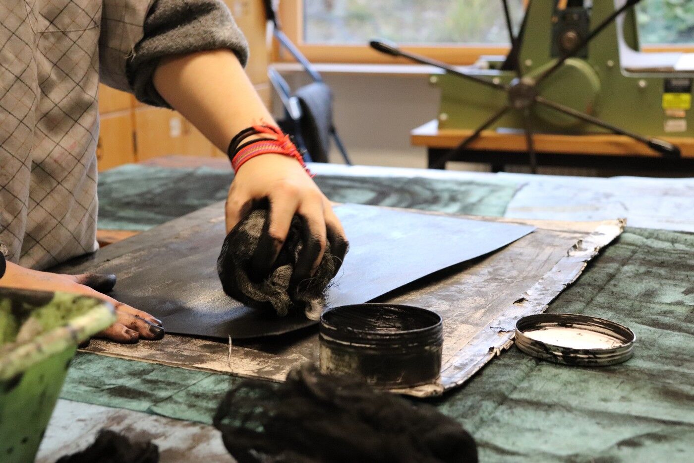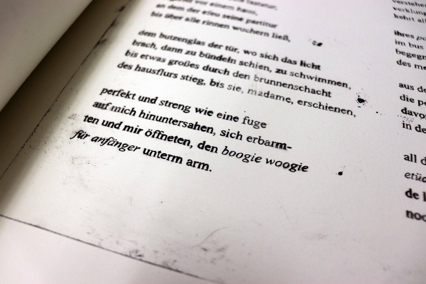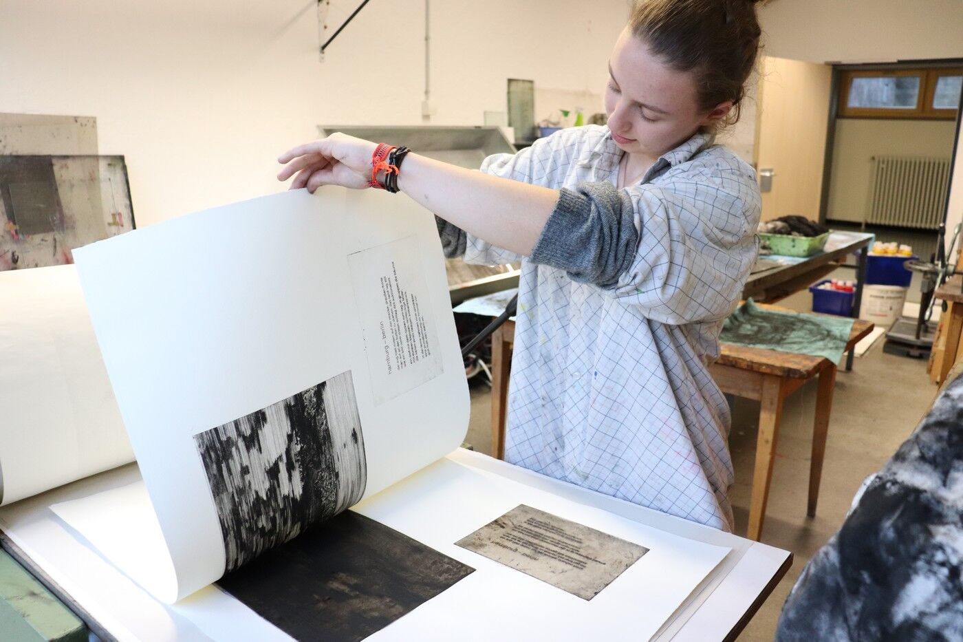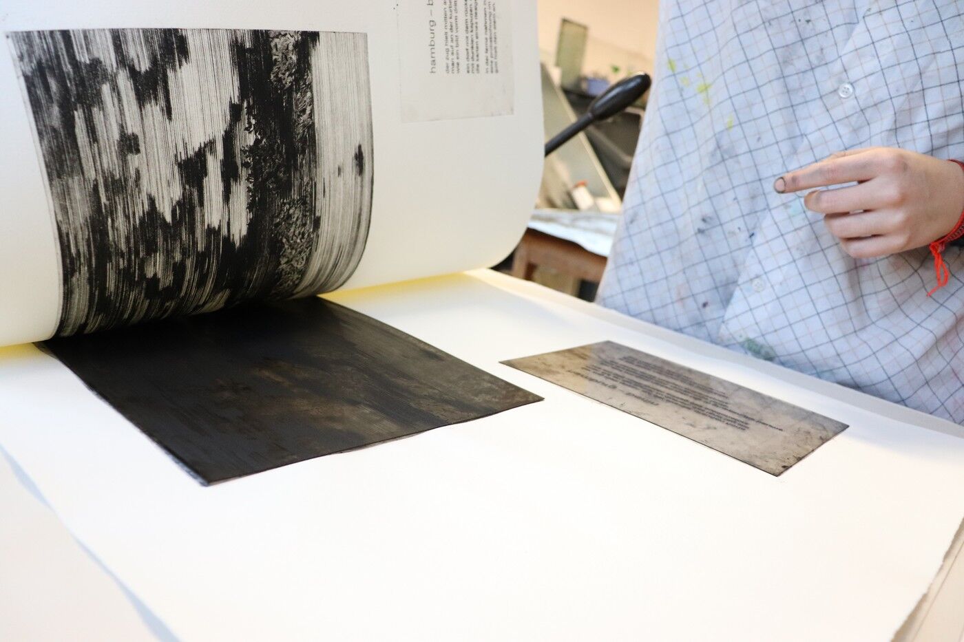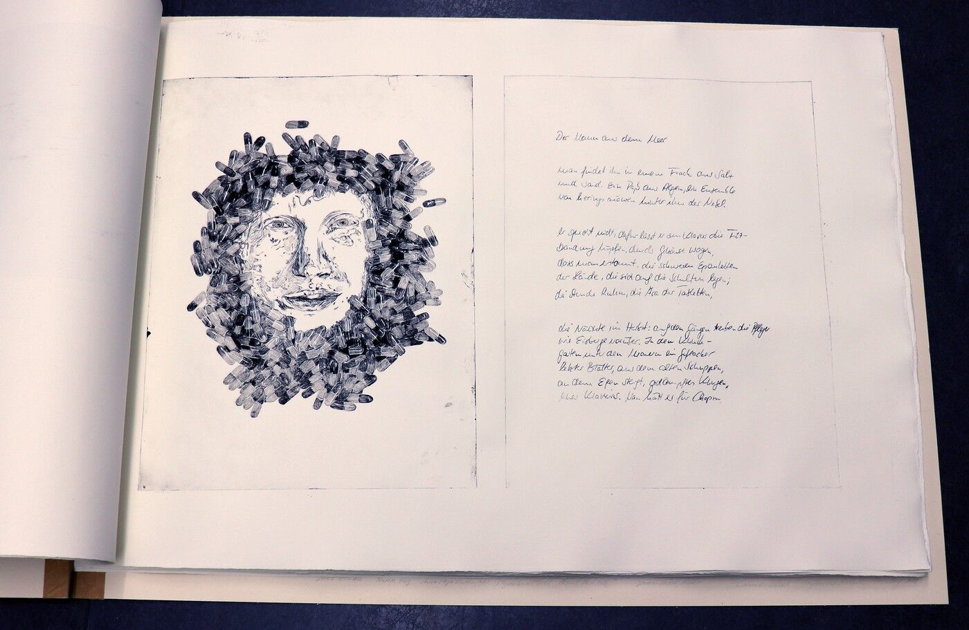 Die Ergebnisse der intensiven gestalterischen und handwerklichen Arbeit sollten natürlich auch öffentlich präsentiert werden. Von Anfang an stand der Gedanke im Raum, die Text-Bild-Kombinationen im Rahmen einer Ausstellung begleitend zu Jan Wagners Lesung im Café Camerloher zu zeigen. Da das Druckverfahren mehrere Abzüge der Grafiken erlaubt, entschloss man sich auch bald, eine kleine Auflage zu produzieren und die Radierungen zu einem Künstlerbuch zu binden, um es dem Autor nach der Lesung überreichen zu können.