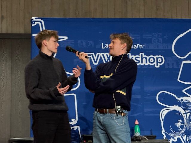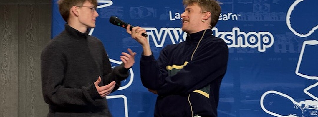 Isabel and Charlie are both part of the “Laugh ‘n’ Learn” programme, which offers workshops for elementary school children up to middle and high school students. All while talking in English they shared their knowledge of the TV industry, acting careers and the production of a scene.