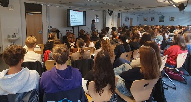 Mit diesen kraftvollen Worten beendete Frau Altenbuchinger-Dick von der Bundesagentur für Arbeit in Freising am 24.09.2024 ihren Vortrag am Camerloher-Gymnasium. Sie präsentierte die unzähligen Möglichkeiten nach dem Abitur – von Studienplätzen über Ausbildungsberufe und duale Studiengänge bis hin zu Praktika und Freiwilligendiensten. Angesichts dieser überwältigenden Auswahl vermittelte die Berufsberaterin die zentrale Botschaft: Keiner muss diese monumentale Entscheidung alleine treffen. Der Vortrag lieferte hilfreiche Tipps und wertvolle Informationen zur Studien- und Berufswahl. Für vertiefende individuelle Beratungsgespräche bietet Frau Altenbuchinger-Dick zudem Termine für Sprechstunden am Camerloher-Gymnasium an.