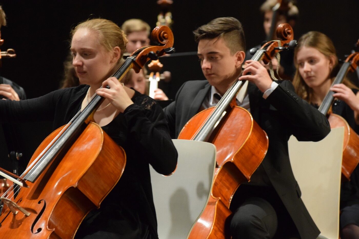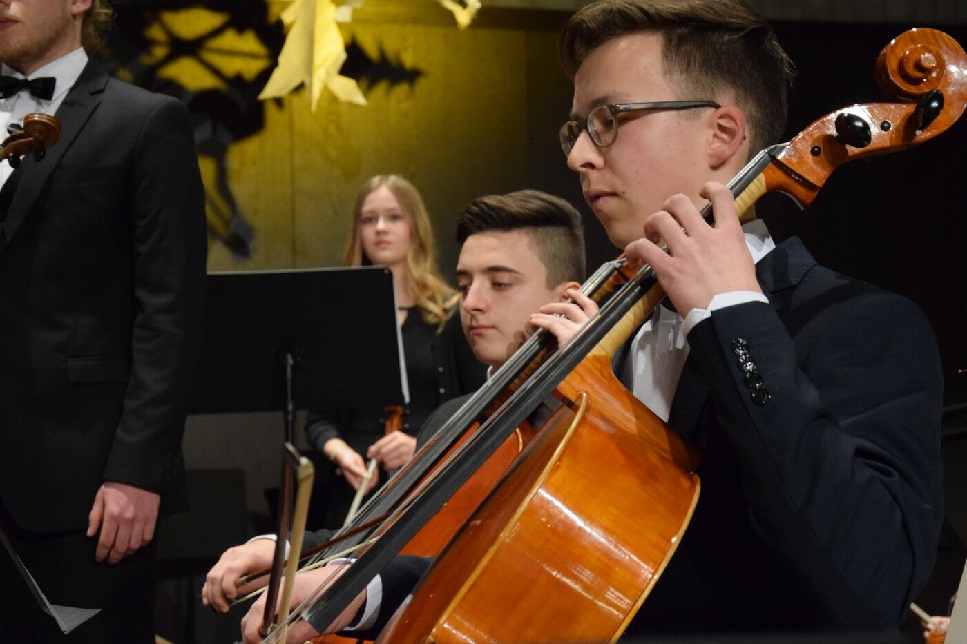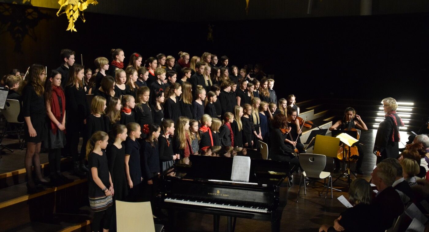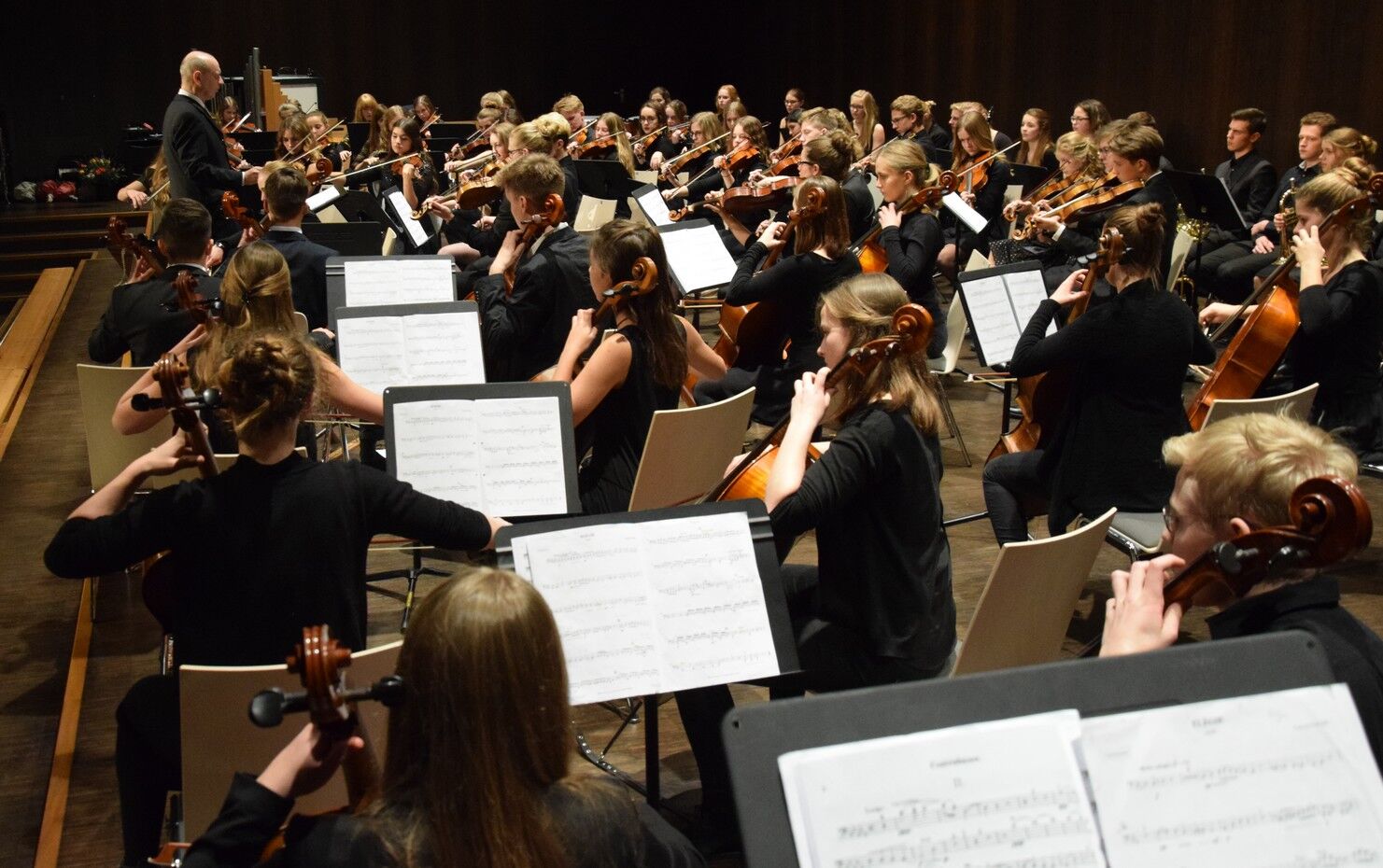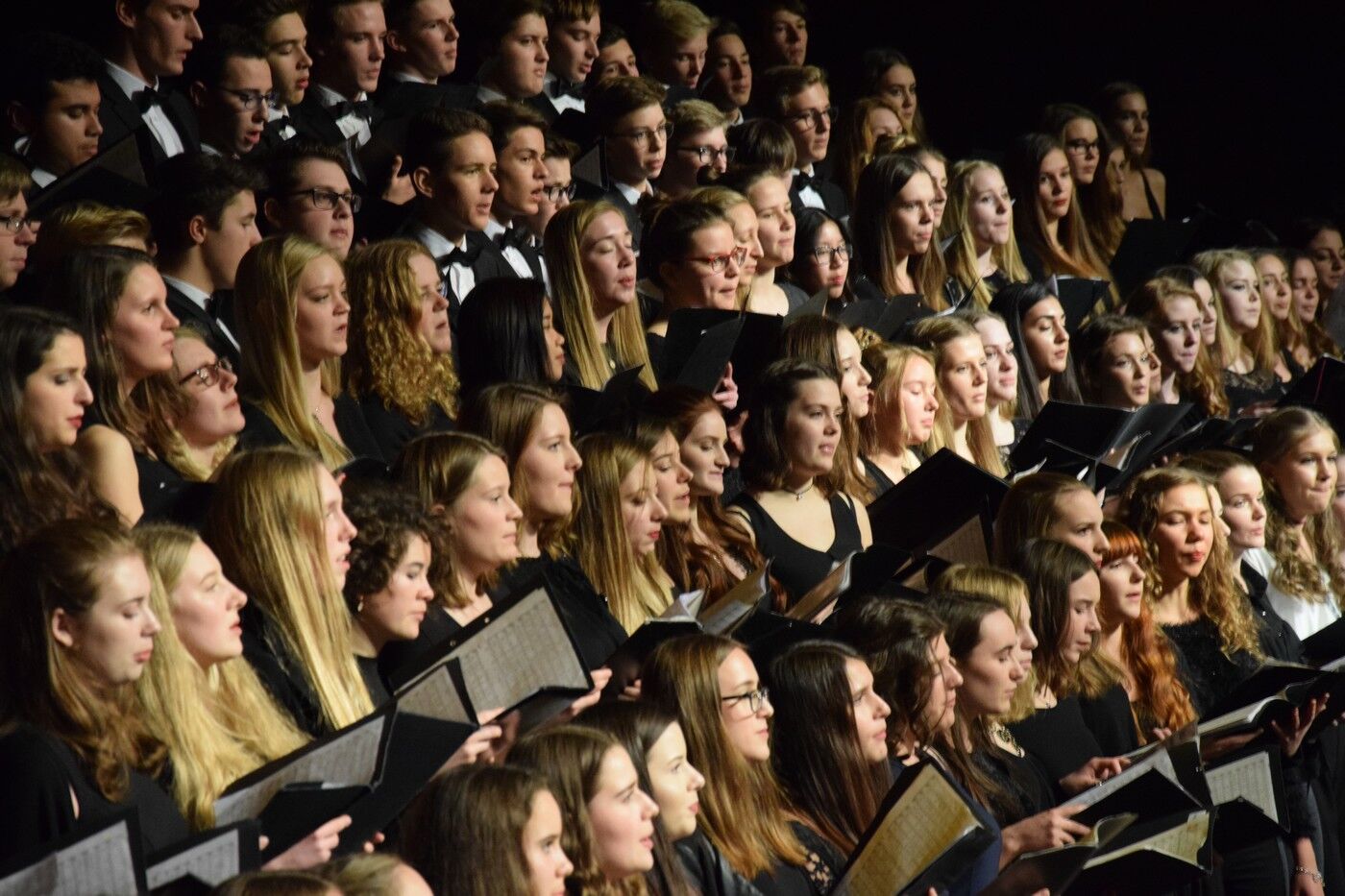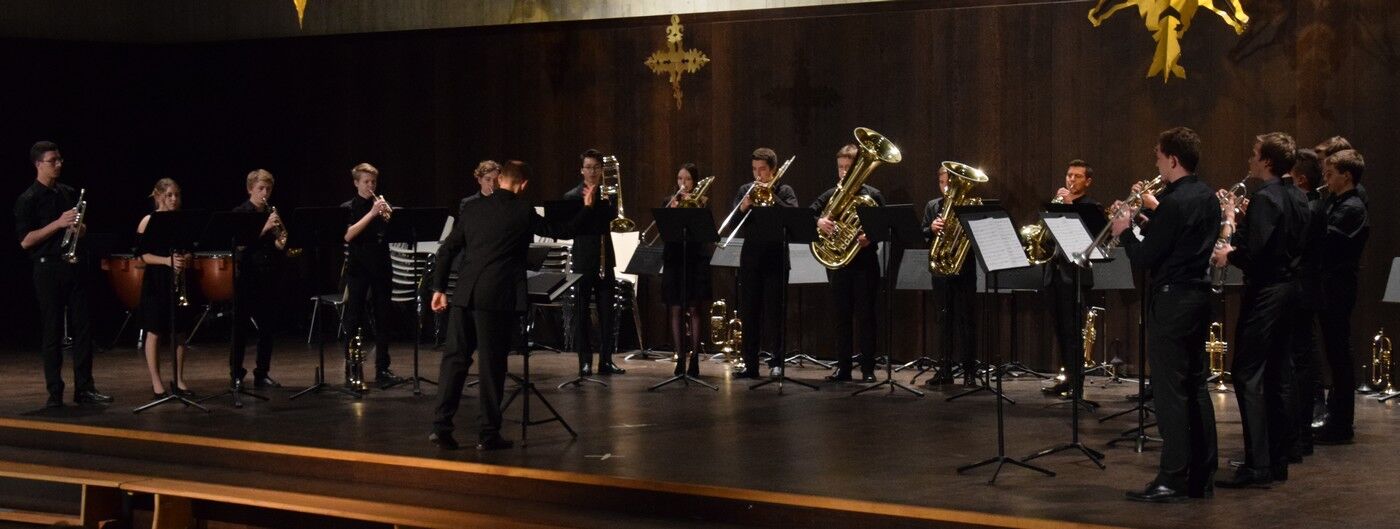 Beim Konzert der „Großen“ hatten die Schülerinnen und Schüler der Jahrgangsstufen neun bis zwölf ebenfalls ein abwechslungsreiches und stimmungsvolles Programm einstudiert und sorgten damit ebenfalls für einen lang anhaltenden Schlussapplaus der über 800 Zuhörerinnen und Zuhörer. Das Sinfonieorchester brillierte beispielsweise mit Gabirel Faurés „Elegie für Solovioloncello und Sinfonieorchester, das Holzbläserensemble mit Astor Piazollas „Oblivion“, das Blechbläserensemble mit Johann Sebastian Bachs „Jesus bleibet meine Freude“, der Mittelstufenchor mit Paul Edwards „Nos mall wonder“ oder das Vokalensemble mit Johann Sebastian Bachs „Wie schön leuchtet der Morgenstern“. Einer der Höhepunkte war sicherlich Erik Esenvalds „Stars“, präsentiert vom Oberstufenchor und begleitet von der Klasse 8a an der Glasharfe. Mit dem „Gloria!“ von Carole Steophens verabschiedete der Große Chor die Zuhörer.