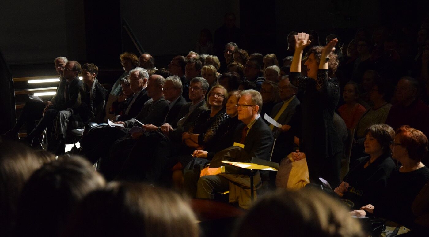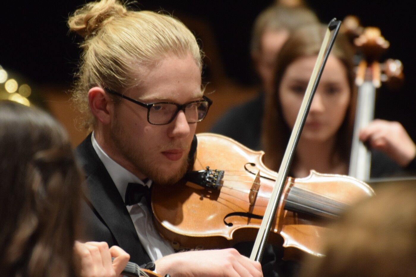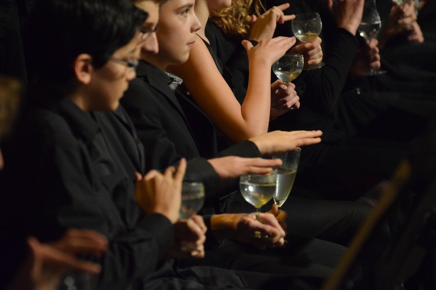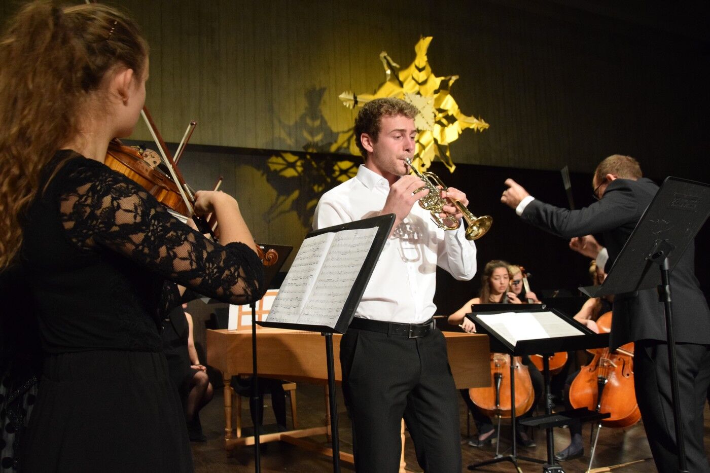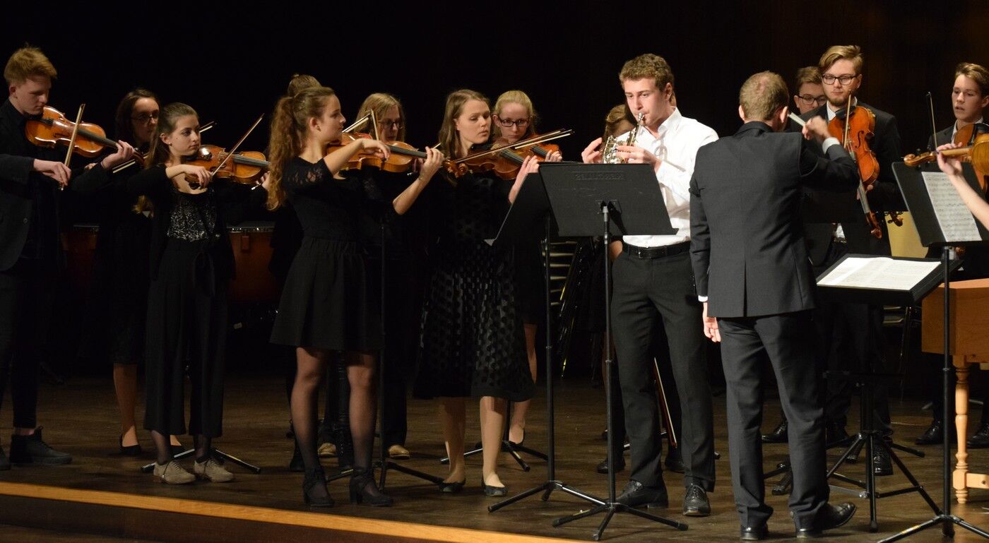 Beim Konzert der „Großen“ hatten die Schülerinnen und Schüler der Jahrgangsstufen neun bis zwölf ebenfalls ein abwechslungsreiches und stimmungsvolles Programm einstudiert und sorgten damit ebenfalls für einen lang anhaltenden Schlussapplaus der über 800 Zuhörerinnen und Zuhörer. Das Sinfonieorchester brillierte beispielsweise mit Gabirel Faurés „Elegie für Solovioloncello und Sinfonieorchester, das Holzbläserensemble mit Astor Piazollas „Oblivion“, das Blechbläserensemble mit Johann Sebastian Bachs „Jesus bleibet meine Freude“, der Mittelstufenchor mit Paul Edwards „Nos mall wonder“ oder das Vokalensemble mit Johann Sebastian Bachs „Wie schön leuchtet der Morgenstern“. Einer der Höhepunkte war sicherlich Erik Esenvalds „Stars“, präsentiert vom Oberstufenchor und begleitet von der Klasse 8a an der Glasharfe. Mit dem „Gloria!“ von Carole Steophens verabschiedete der Große Chor die Zuhörer.
