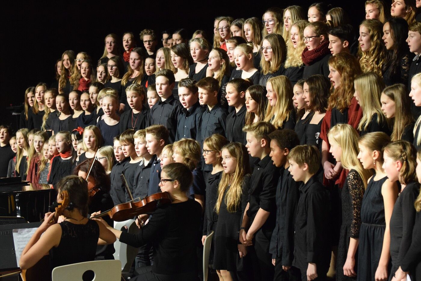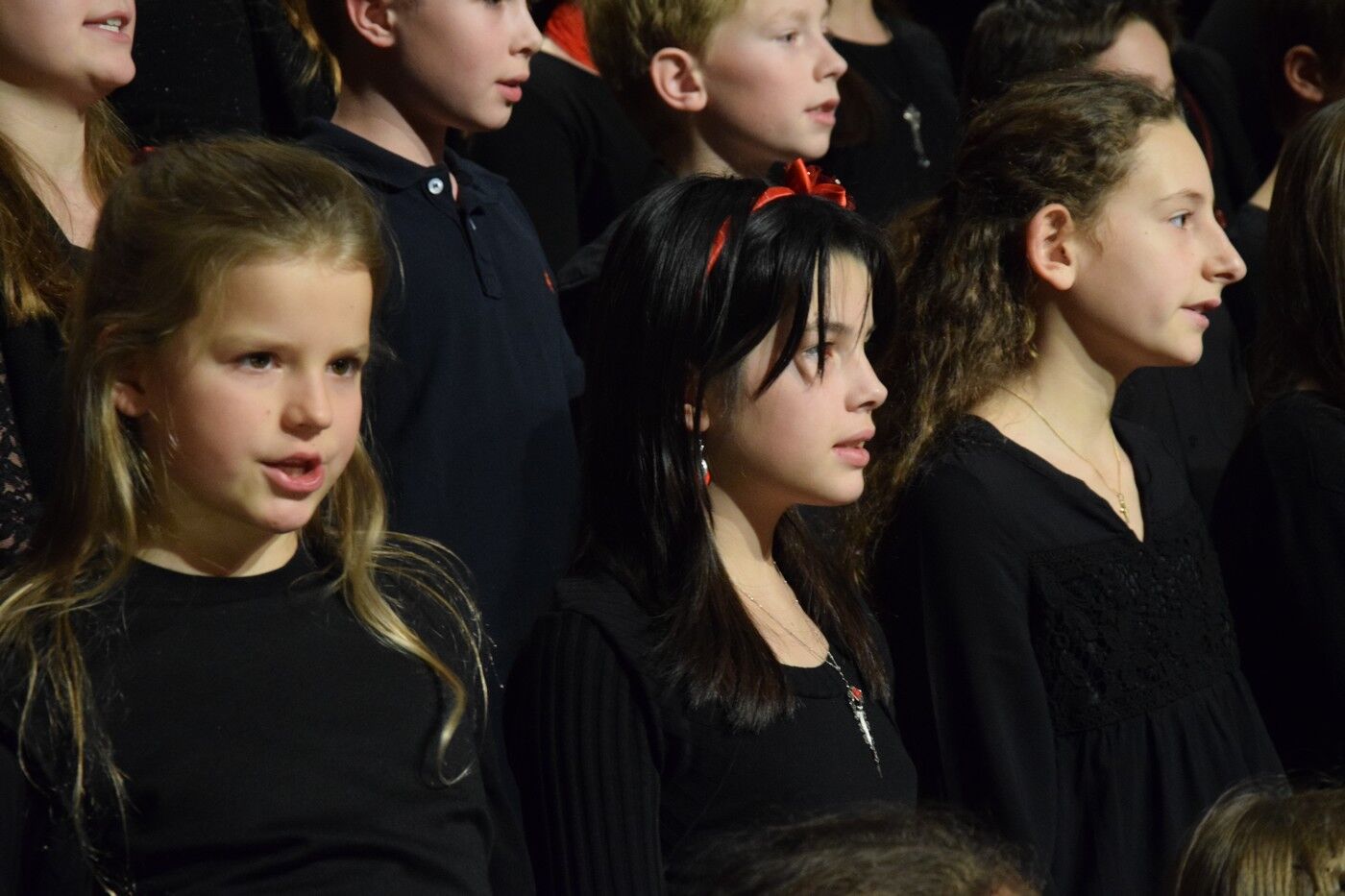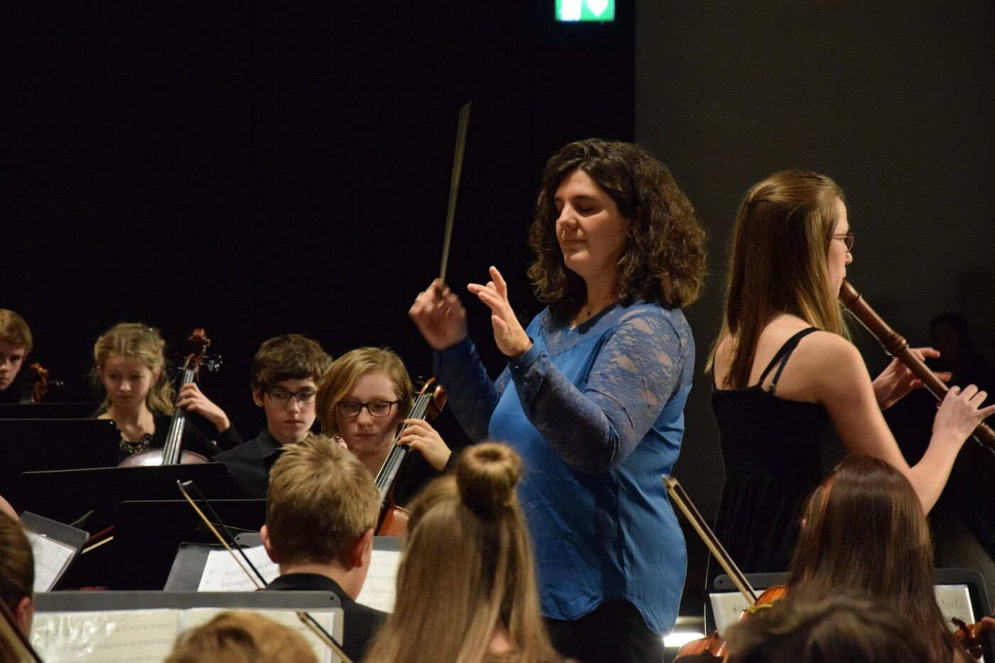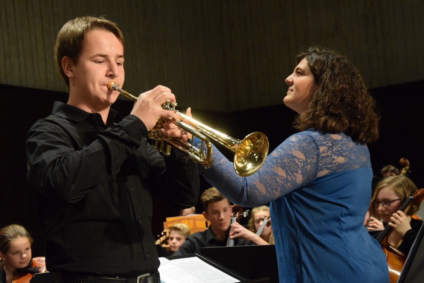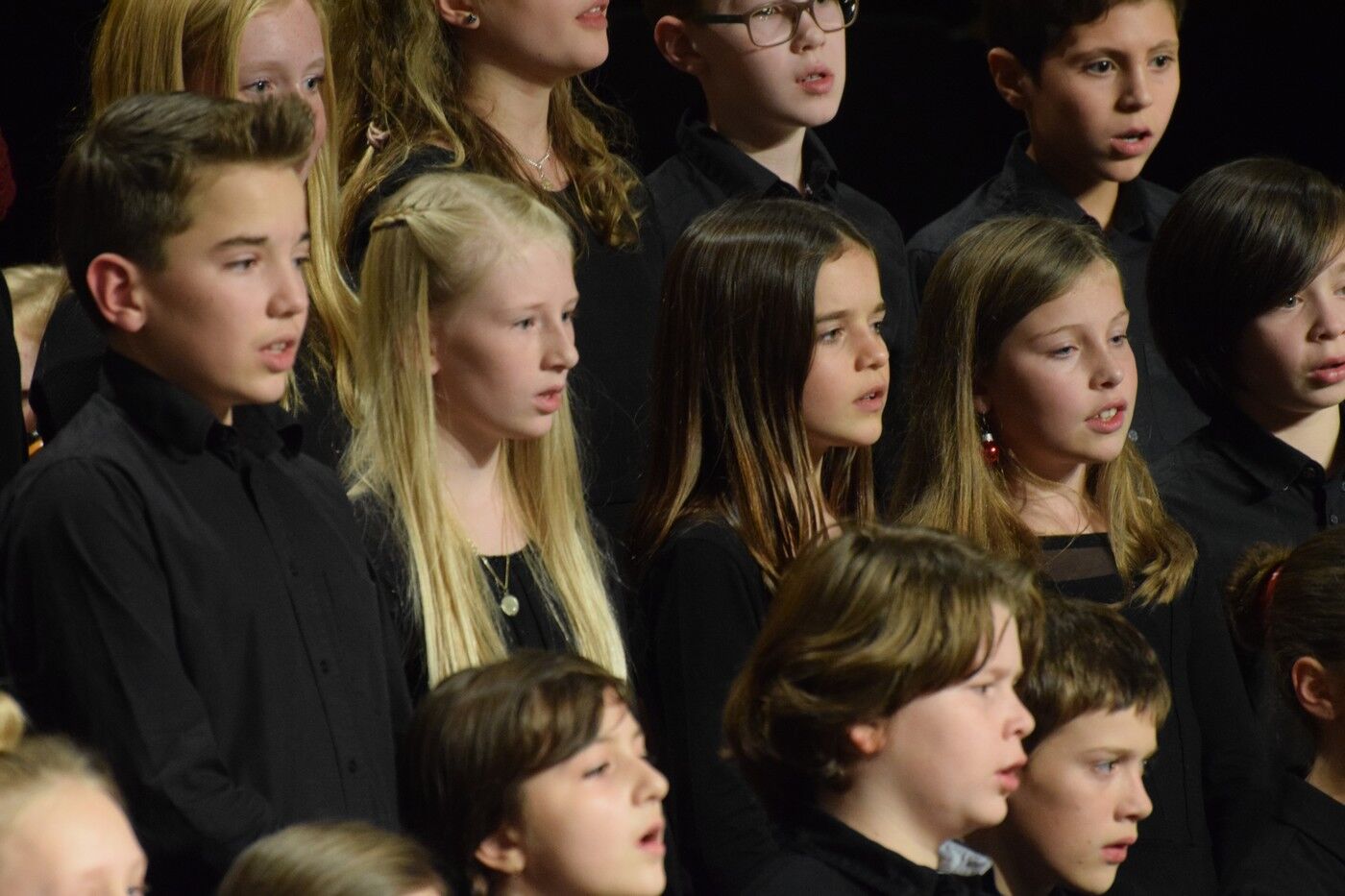 Von diesem Klangchaos der intensiven Probenarbeit war dann bei den beiden Konzertabenden nichts mehr zu hören. Die verschiedenen Ensembles präsentierten zusammen mit ihren Musiklehrkräften beispielsweise beim Montags-Konzert der Jahrgangsstufen fünf bis acht ein buntes und abwechslungsreiches Programm. Für den schwungvollen Auftakt sorgte das Jugendstreichorchester mit Antonin Vivaldis „Konzert für Blockflöte und Streicher in C-Dur“. Der Jugendchor der 5. und 6. Klassen stimmte mit „Zu Bethlehem übern Stall“ und „Angel’s Carol“ ebenso auf Weihnachten ein wie auch das Jugendholzbläserensemble mit „Jingle Bells“ oder „Rudolp, the rednose reindeer.“ Das Jugendblechbläserensemble glänzte beispielsweise mit Canalis „Canzona per sonare no. 18“ und der Jugendchor mit Johann Michael Haydns „Puer natus in Bethlehem“. Alle Chöre und das große Jugendsinfonieorchester versammelten sich am Ende zum großen Finale auf der Bühne. Mit Felix Mendelssohn-Barholdys „Hark! The Herald Angels Sing“, arrangiert von Ted Ricketts verabschiedeten sich die Schülerinnen und Schüler das Publikum.