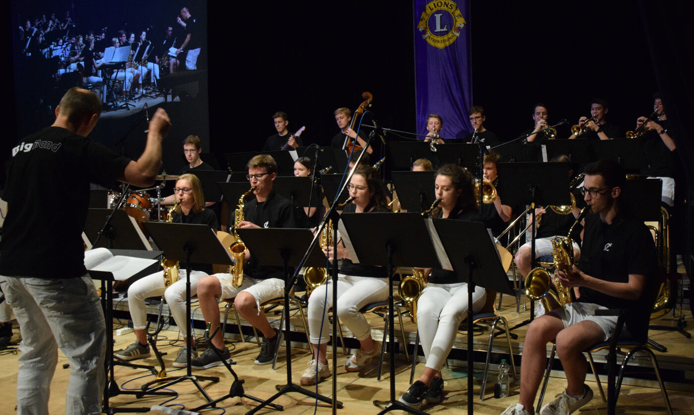 Das große Bigband Konzert des Lions Club Freising zählt seit einigen Jahren zum festen Bestandteil des erfolgreichen Uferlos Festivals. Inge und Walter Flad von den Lions organisierten – wie schon 15 Mal davor – das große Konzert, bei dem sich die Bigbands der weiterführenden Freisinger Schulen ein Stell-dich-ein geben.