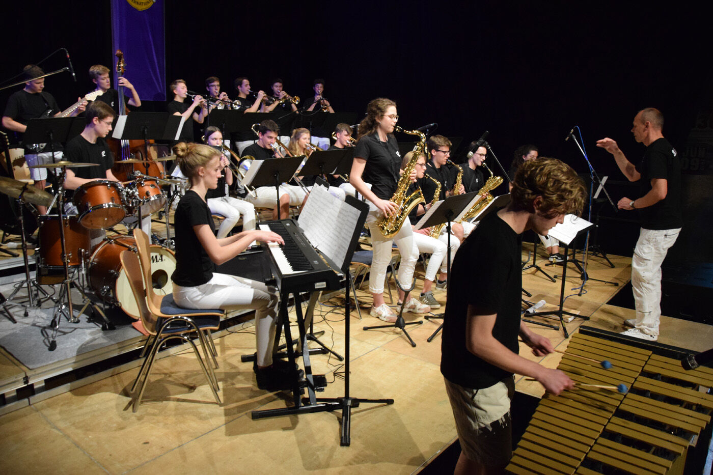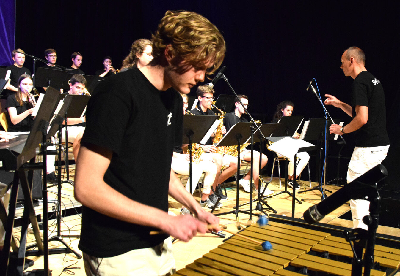 Die vielen Zuhörer waren freilich in erster Linie am Mittwochabend in die Luitpoldhalle gekommen, um sich vom Bigband-Sound mitreißen zu lassen. Und sie kamen voll auf ihre Kosten. Die Bands von der Karl-Meichelbeck-Realschule (Leitung Jürgen Wüst), vom Josef-Hofmiller-Gymnasium (Leitung Marina Bögl) und vom Camerloher-Gymnasium (Tiedemann bezeichnete Bandleader Gunter Fendler als den „unkaputbaren Taktstockschwinger“) sorgten für ein abwechslungsreiches und mitreißendes Programm.