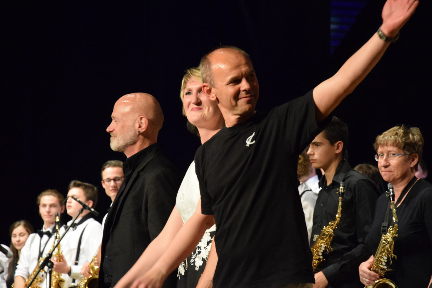 Los ging’s mit „Hit The Road Jack“, das alle drei Bands gemeinsam spielten. Die Camerloher-Musiker hatten dann unter anderem in ihrem Bigband Gepäck: „Seven Steps To Heaven“, „Parisiens Thoroughfare“ oder „This Can’t Be Love“. Gemeinsam beendeten die drei Bands das Konzert mit „Shut Up And Dance“. Danach gab’s beim Publikum kein Halten mehr. Nach wenigen Sekunden standen alle Zuhörer und forderten lautstark Zugaben. Die Bands waren darauf vorbereitet.