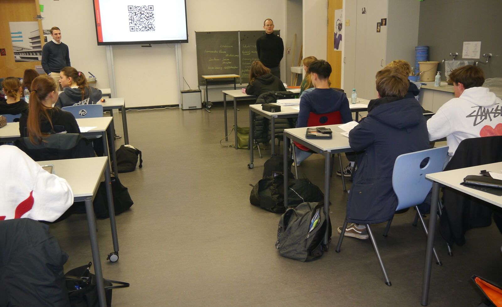 Zum Abschluss des ersten Kapitels fand für die Schülerinnen und Schüler der Wirtschaft und Recht – Kurse der 12. Jahrgangsstufe (G9) am Montag, den 11. November 2024 eine besondere Doppelstunde statt. Herr Felsl und Herr Müller von der Sparkasse Freising waren zu Gast am Camerloher Gymnasium, um gemeinsam mit den Schülerinnen und Schülern das neu erlernte Wissen im Bereich der Betriebswirtschaftslehre anhand konkreter Beispiele aus der Praxis anzuwenden und zu vertiefen.