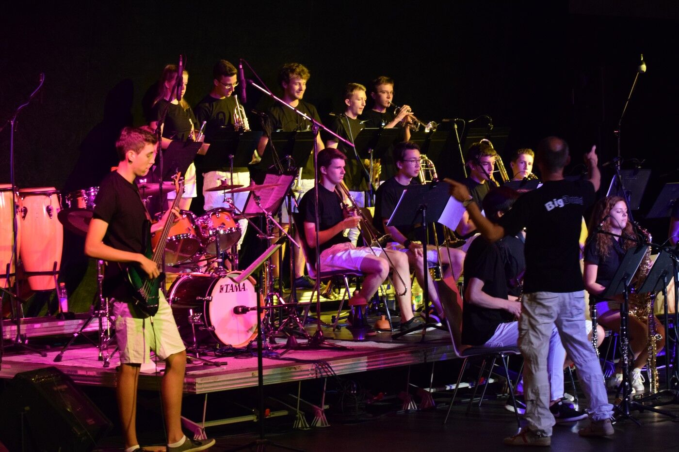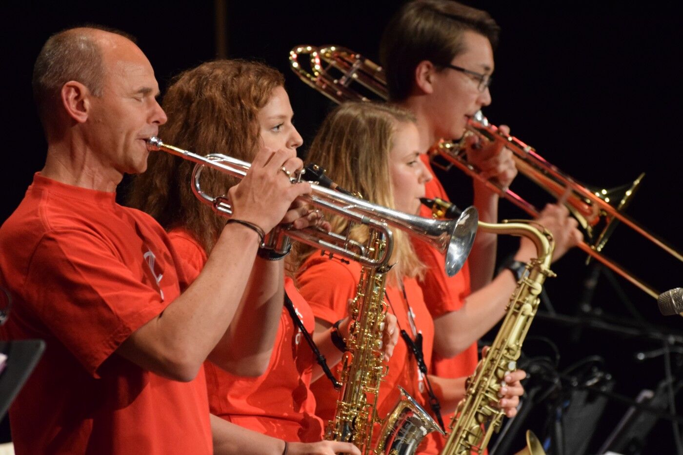 „Heute Abend bleibt kein Fuß unbewegt am Boden bleibt“, kündigte Moderator Julien Dumat an. Und dem war auch so: Zwei Stunden lang folgte ein Highlight dem anderen. Die Camerloher-Bigband unter der Leitung von Gunther Fendler spielte wie aus einem Guss und brachte mit ihren vielen fetzigen Nummern, die von Rock, Pop über Funk bis hin zu Klassikern des Bigbandsounds reichten, die Konzert-Aula des Camerloher-Gymnasiums zwei Stunden lang zum Kochen.