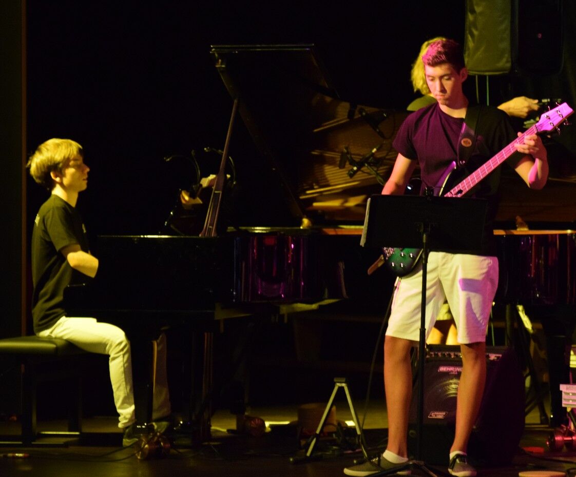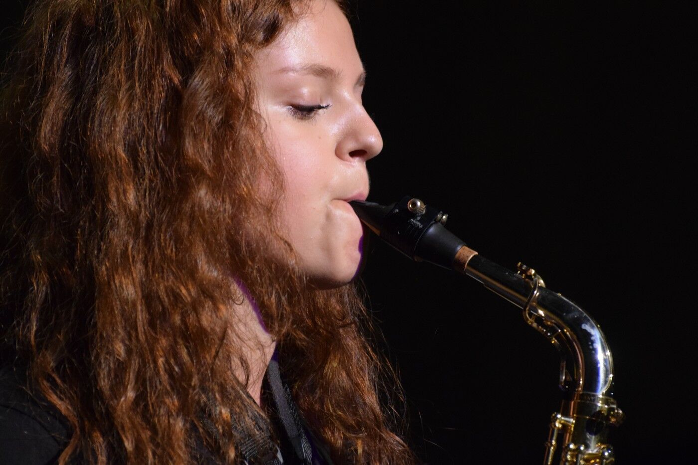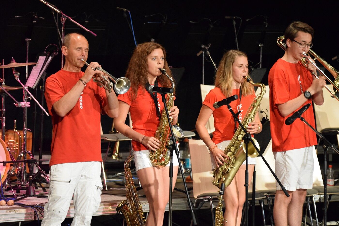 Ein Höhepunkt nach der Pause war der Auftritt der Combo, in der Gunther Fendler seinen besten Instrumentalisten die Möglichkeit gibt, ihr Können zu entfalten und nach Herzenslust zu improvisieren. Mit einem echten Jazz-Standard von Dizzy Gillespie („Groovin‘ High“) brachte die Combo die Zuhörer nach der Pause wieder in Schwung. Nach Südamerika wechselt sie dann mit Chucho Valdes‘ „Boliviana“. Mit dem Dixi „Indiana“ von James F. Hanley verabschiedete sich die Combo. Eigentlich klar, dass die Combo mit ihrem professionellen Anspruch auch außerhalb der Schule für Auftritte gebucht wird.