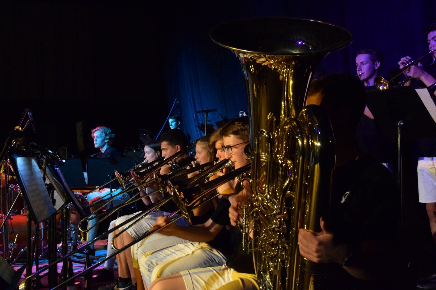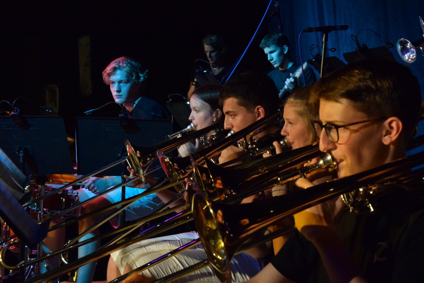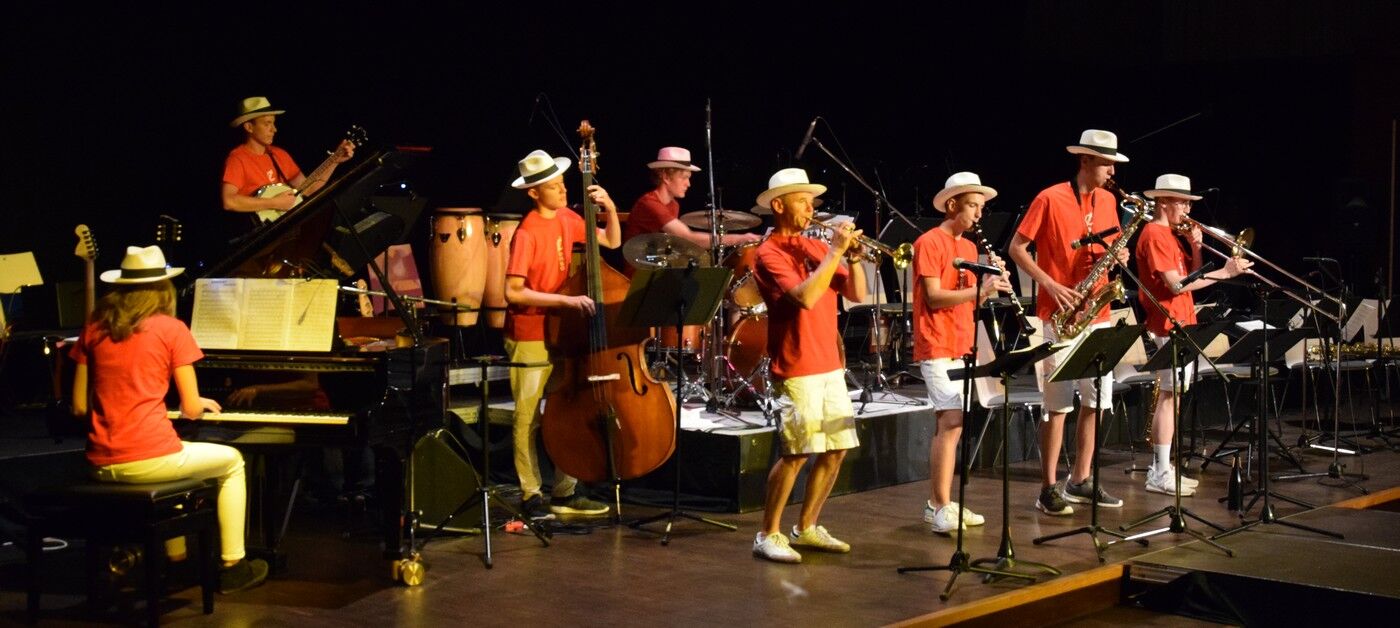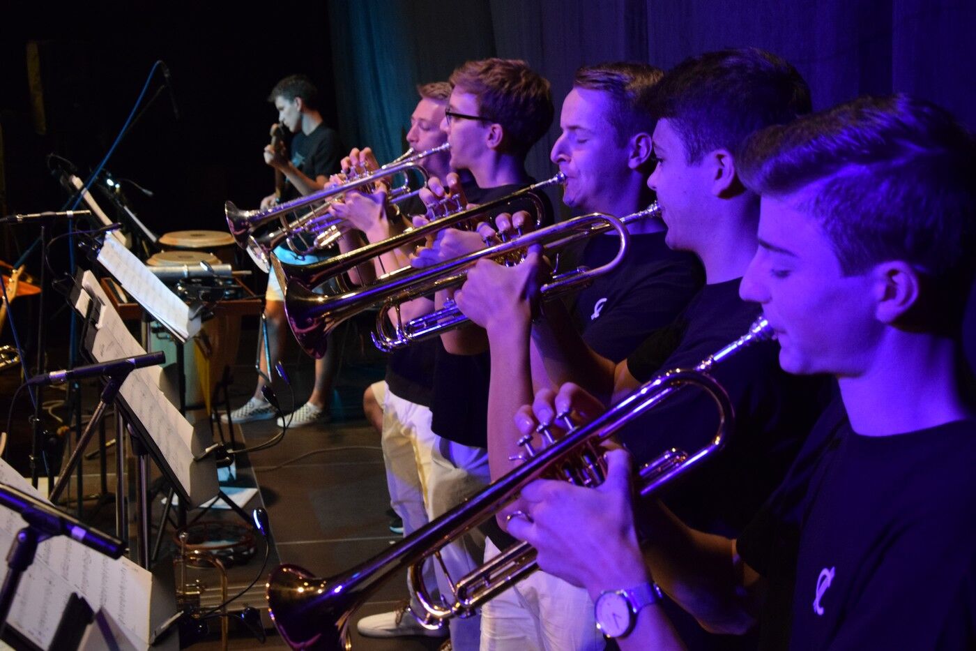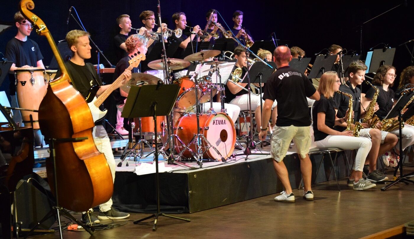 Wie gut die Camerloher-Bigband harmoniert und eingespielt ist, zeigte sich darin, dass ihr Chef Gunther Fendler bei der einen oder anderen Nummer das Dirigentenpult verlassen und vergnügt seinen Schülerinnen und Schülern vom Rand der Bühne zuhören konnte. Das lange und intensive Proben hat sich für die Bandmitglieder gelohnt. Saxophon: Anja Kirnberger, Cordula Kraetzl, Lena Rauschecker, Bartholomäus Schlüter, Luis Weidlich. Posaune: Gabriel Brand, Marcus Huber, Anton Liebe, Kira Luithard, Katharina Müller. Tuba: Bernhard Mottinger. Trompete: Lorenz Bühler, Robert Mottinger, Michael Nauderer, Dimitrios Schwechheimer, Aaron Schwarz. Gitarre: Leonhard Betz. Bass: Benjamin Hillemann. Schlagzeug: Emanuel Kirschner, Bernhard Mottinger. Vibrapon: Emanuel Kirschner. Klavier: Luisa Bormann.