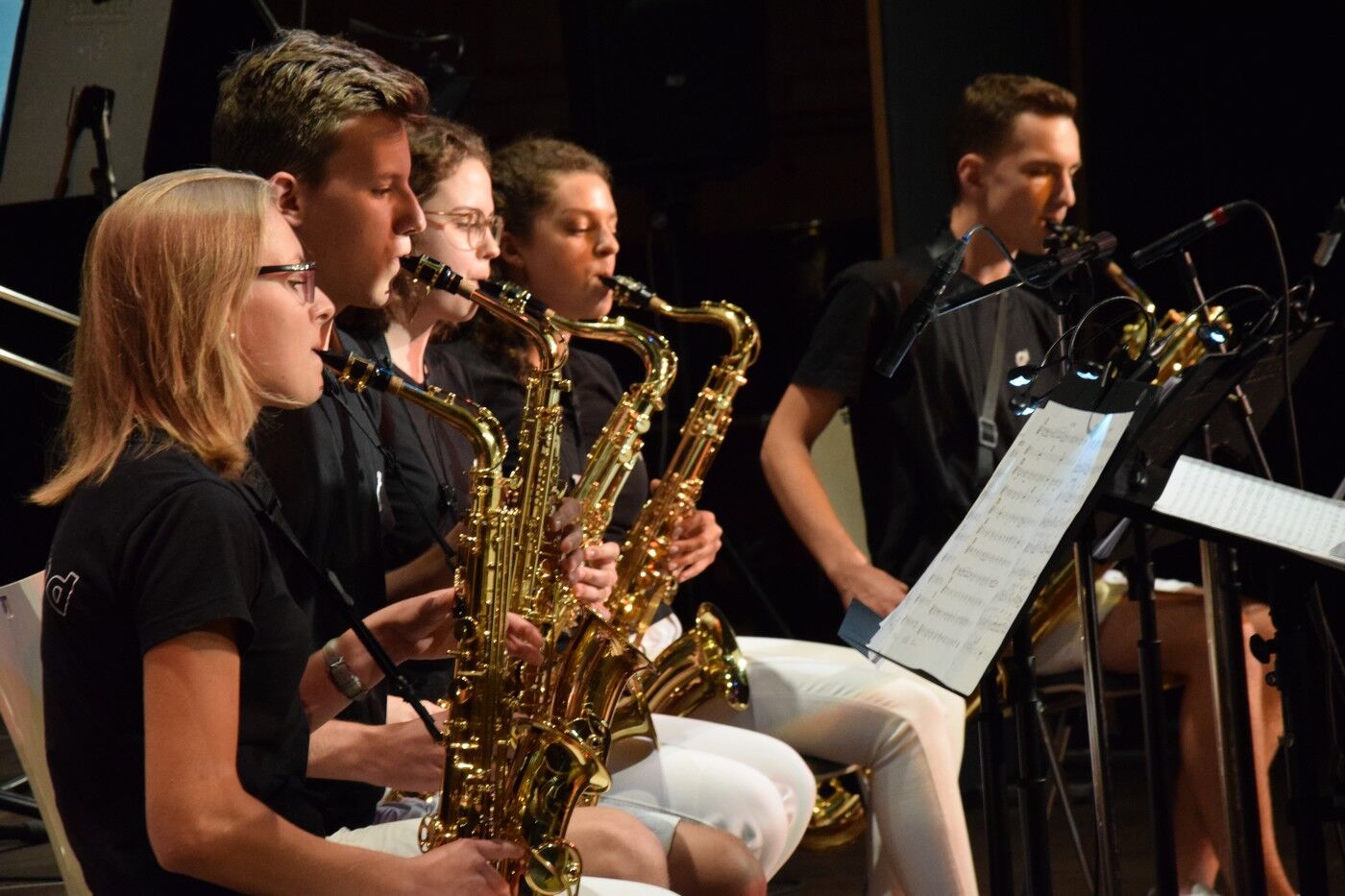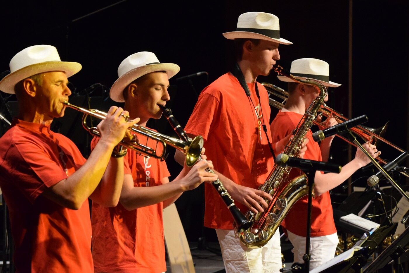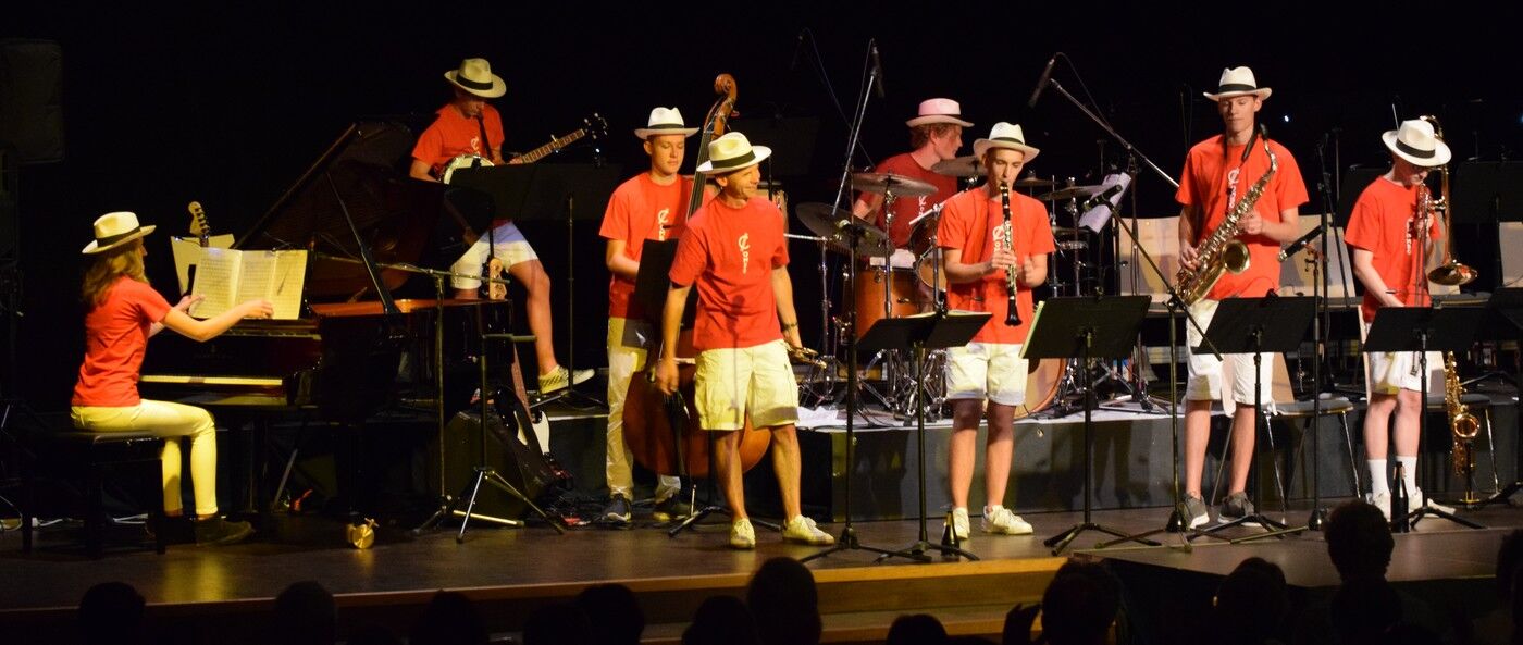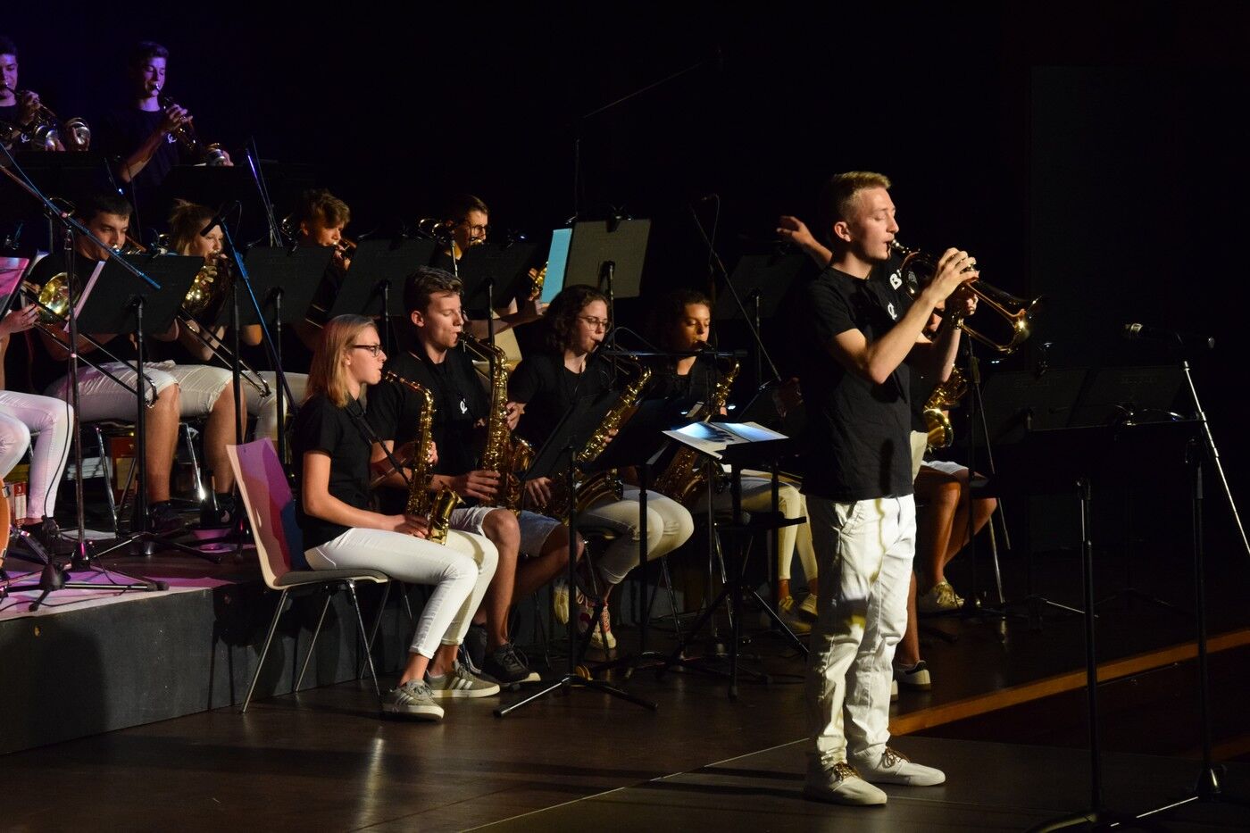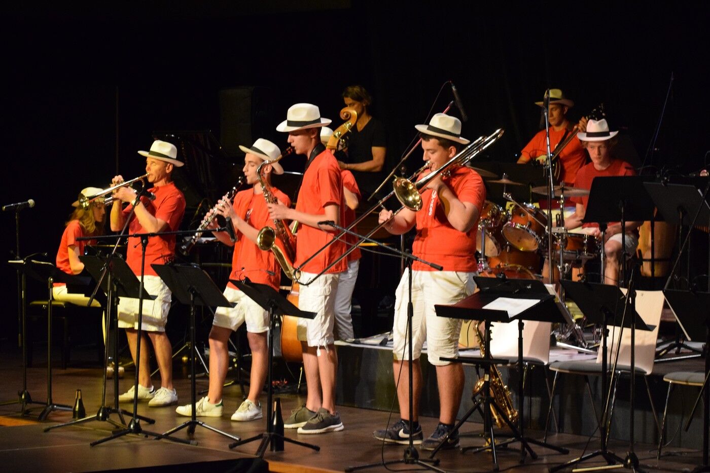 Wie gut die Camerloher-Bigband harmoniert und eingespielt ist, zeigte sich darin, dass ihr Chef Gunther Fendler bei der einen oder anderen Nummer das Dirigentenpult verlassen und vergnügt seinen Schülerinnen und Schülern vom Rand der Bühne zuhören konnte. Das lange und intensive Proben hat sich für die Bandmitglieder gelohnt. Saxophon: Anja Kirnberger, Cordula Kraetzl, Lena Rauschecker, Bartholomäus Schlüter, Luis Weidlich. Posaune: Gabriel Brand, Marcus Huber, Anton Liebe, Kira Luithard, Katharina Müller. Tuba: Bernhard Mottinger. Trompete: Lorenz Bühler, Robert Mottinger, Michael Nauderer, Dimitrios Schwechheimer, Aaron Schwarz. Gitarre: Leonhard Betz. Bass: Benjamin Hillemann. Schlagzeug: Emanuel Kirschner, Bernhard Mottinger. Vibrapon: Emanuel Kirschner. Klavier: Luisa Bormann.