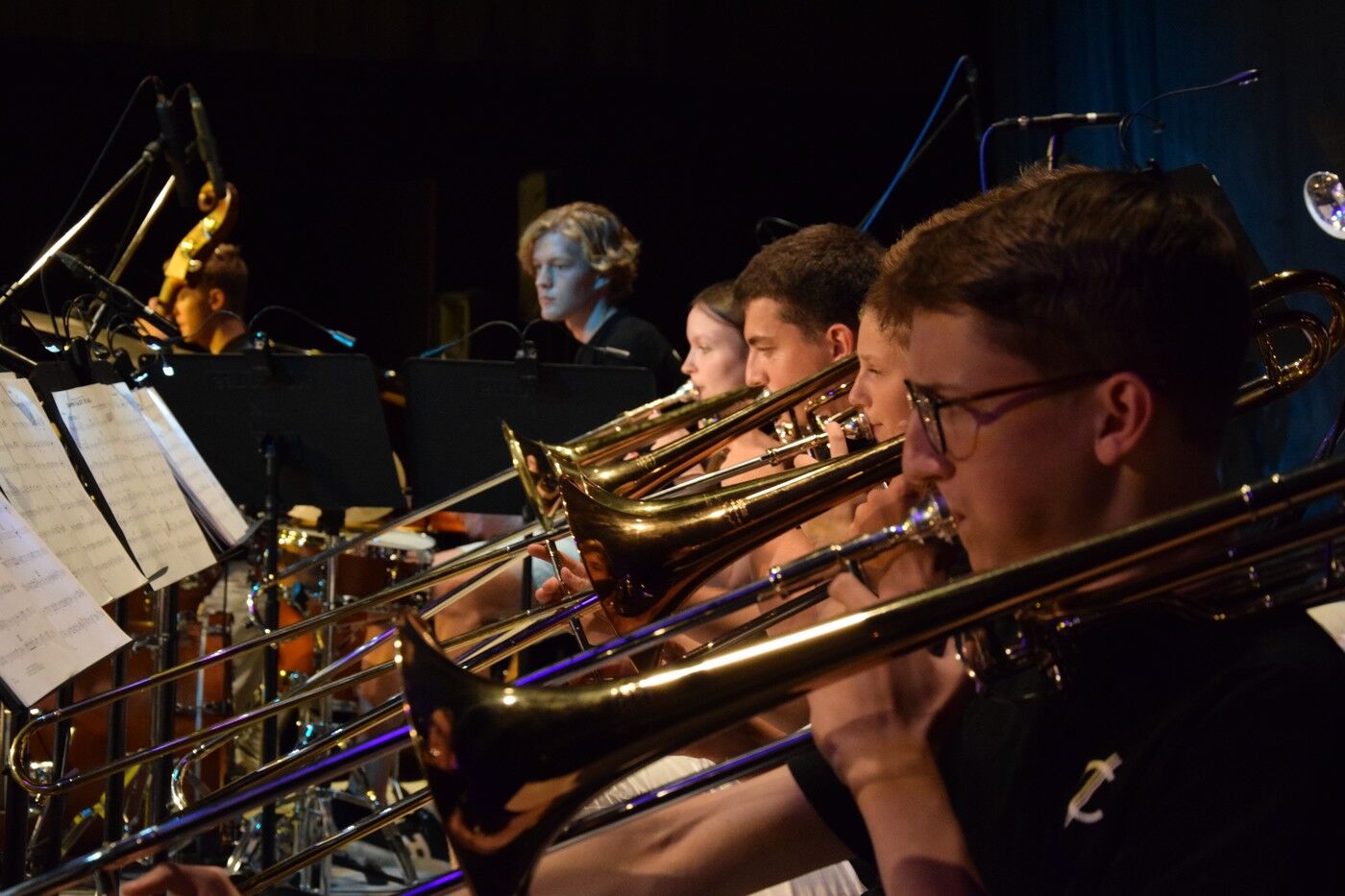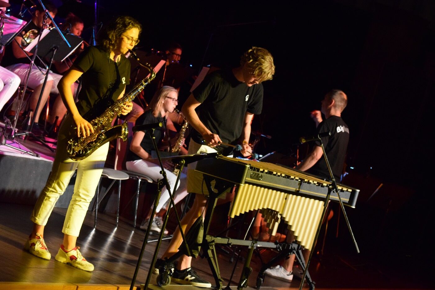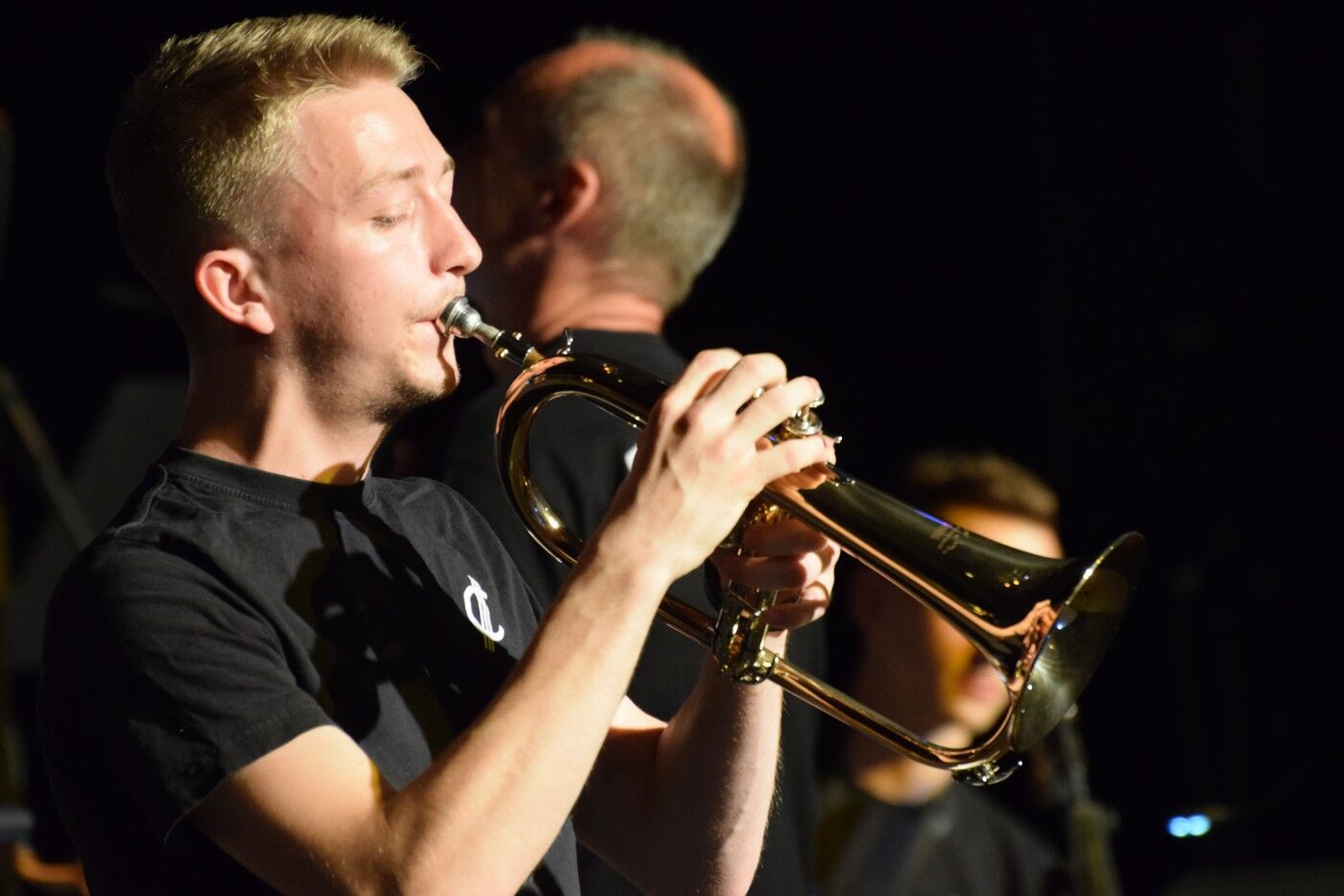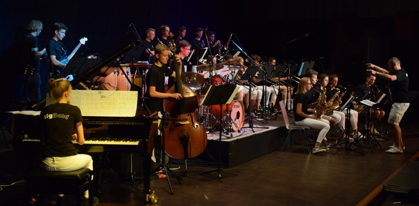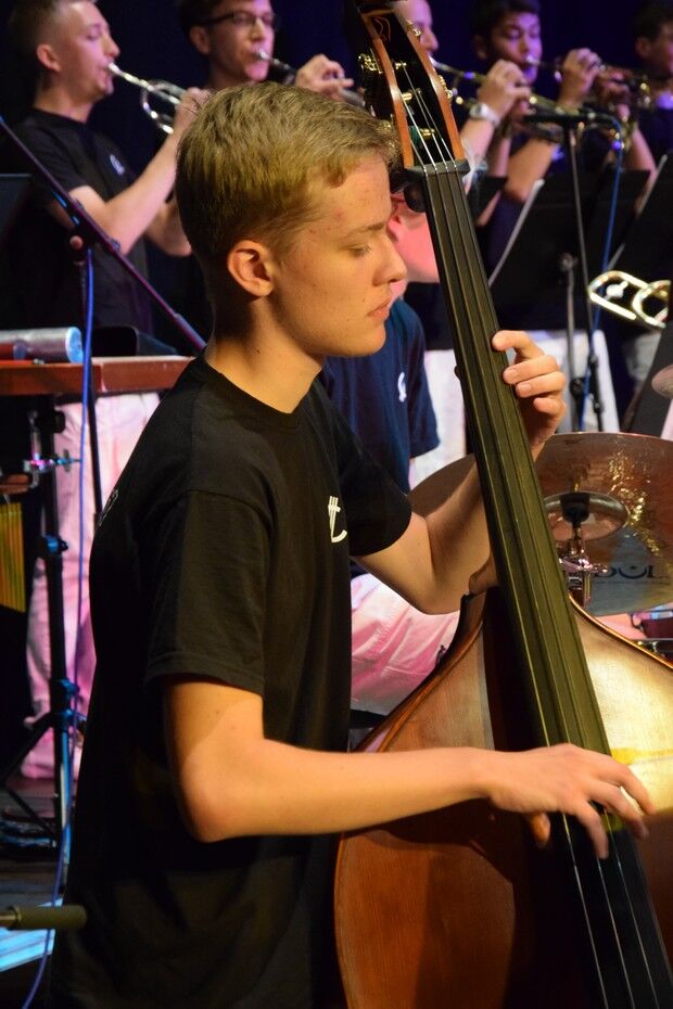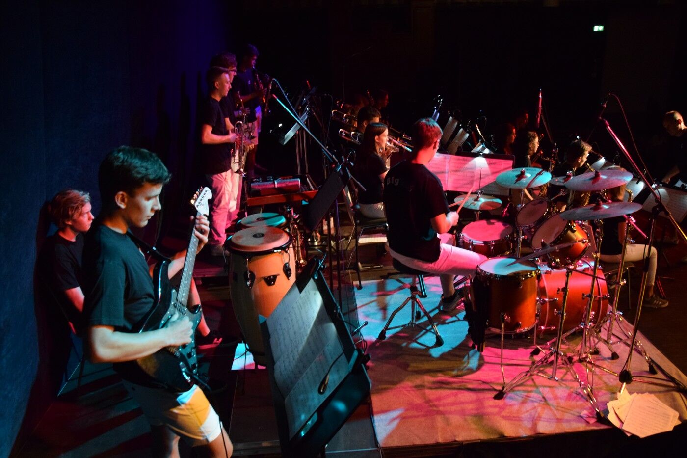 Wie gut die Camerloher-Bigband harmoniert und eingespielt ist, zeigte sich darin, dass ihr Chef Gunther Fendler bei der einen oder anderen Nummer das Dirigentenpult verlassen und vergnügt seinen Schülerinnen und Schülern vom Rand der Bühne zuhören konnte. Das lange und intensive Proben hat sich für die Bandmitglieder gelohnt. Saxophon: Anja Kirnberger, Cordula Kraetzl, Lena Rauschecker, Bartholomäus Schlüter, Luis Weidlich. Posaune: Gabriel Brand, Marcus Huber, Anton Liebe, Kira Luithard, Katharina Müller. Tuba: Bernhard Mottinger. Trompete: Lorenz Bühler, Robert Mottinger, Michael Nauderer, Dimitrios Schwechheimer, Aaron Schwarz. Gitarre: Leonhard Betz. Bass: Benjamin Hillemann. Schlagzeug: Emanuel Kirschner, Bernhard Mottinger. Vibrapon: Emanuel Kirschner. Klavier: Luisa Bormann.
