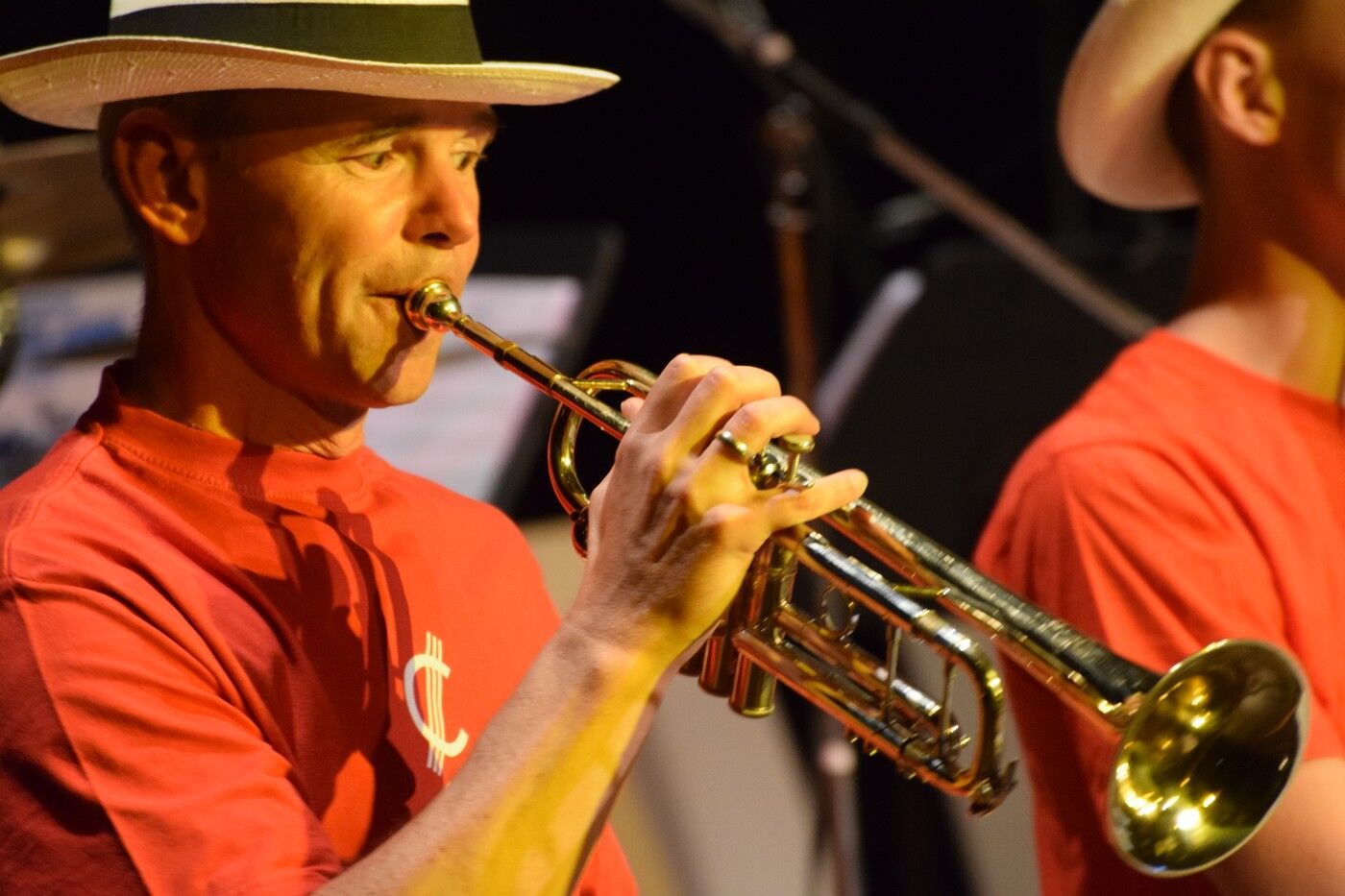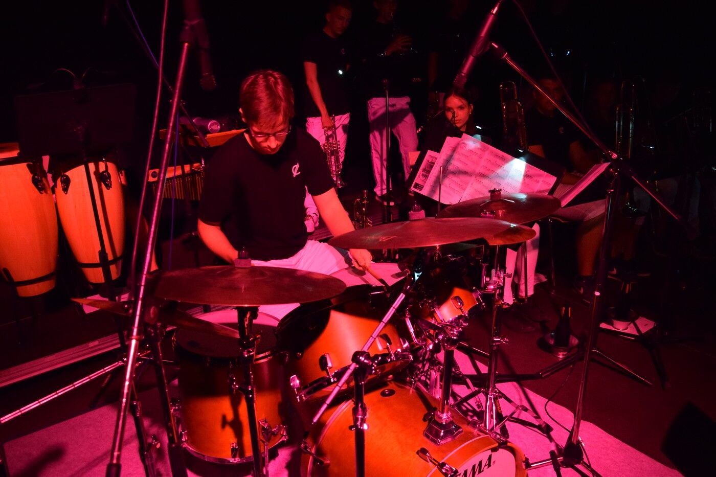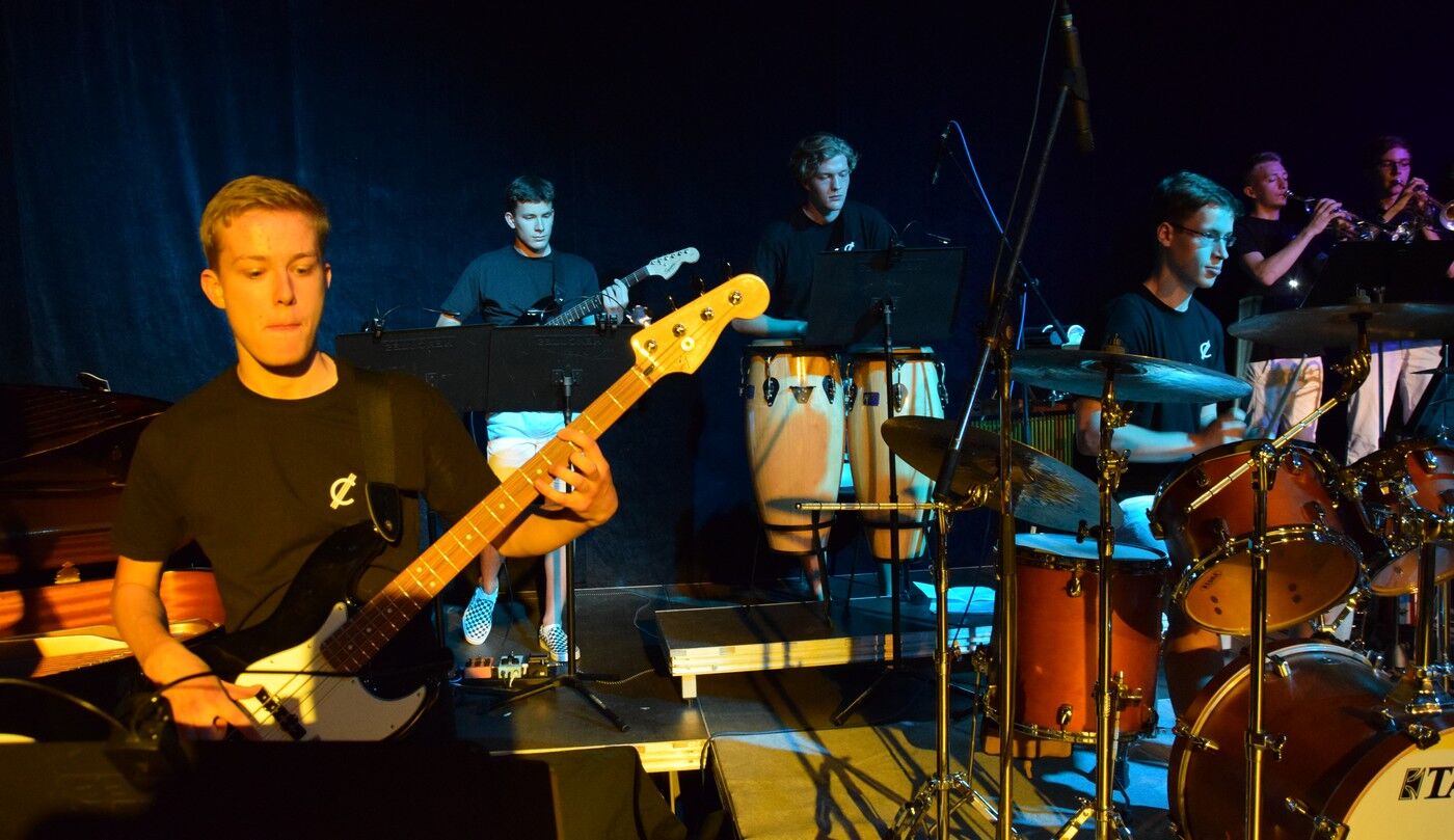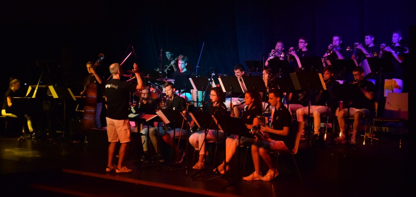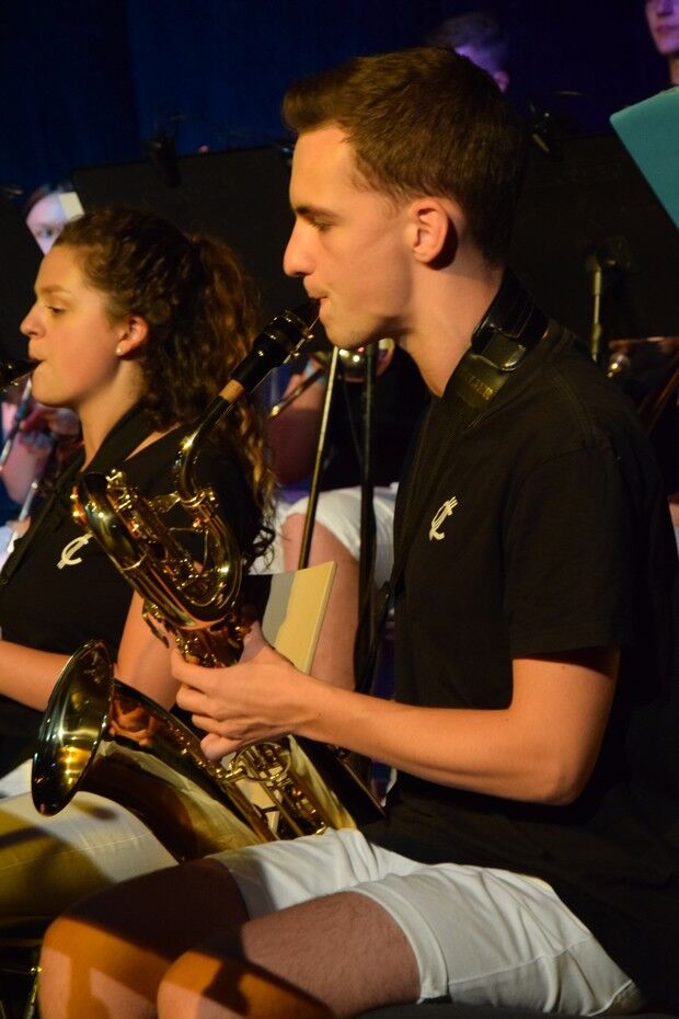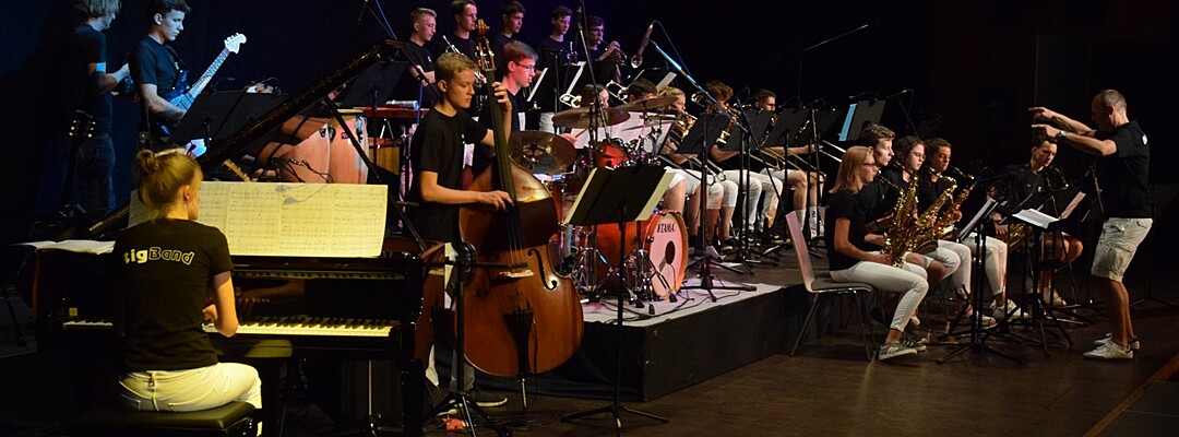 Wie gut die Camerloher-Bigband harmoniert und eingespielt ist, zeigte sich darin, dass ihr Chef Gunther Fendler bei der einen oder anderen Nummer das Dirigentenpult verlassen und vergnügt seinen Schülerinnen und Schülern vom Rand der Bühne zuhören konnte. Das lange und intensive Proben hat sich für die Bandmitglieder gelohnt. Saxophon: Anja Kirnberger, Cordula Kraetzl, Lena Rauschecker, Bartholomäus Schlüter, Luis Weidlich. Posaune: Gabriel Brand, Marcus Huber, Anton Liebe, Kira Luithard, Katharina Müller. Tuba: Bernhard Mottinger. Trompete: Lorenz Bühler, Robert Mottinger, Michael Nauderer, Dimitrios Schwechheimer, Aaron Schwarz. Gitarre: Leonhard Betz. Bass: Benjamin Hillemann. Schlagzeug: Emanuel Kirschner, Bernhard Mottinger. Vibrapon: Emanuel Kirschner. Klavier: Luisa Bormann.