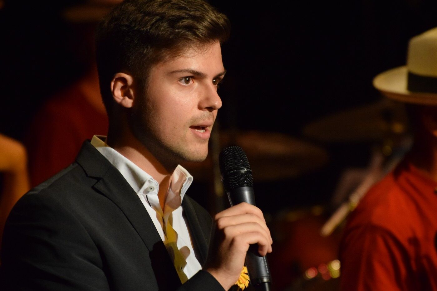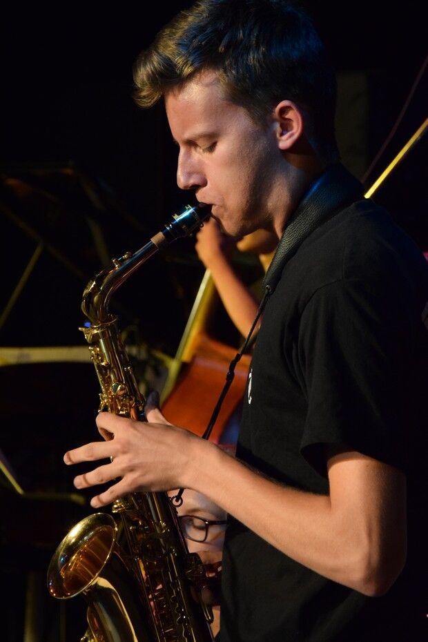 Moderator Julien Dumat, ehemaliges Bigband-Mitglied, führte eloquent und charmant durch den Abend und versprach allen „Jazzenthusiasten“ und „Jazznewcomern“ in der Camerloher-Aula einen „Abend, gefüllt mit musikalischen Höhepunkten“, die „Vertrautes und Unbekanntes in ausbalancierter Mischung“ präsentierten. Die Fendlerische Bigband sorgte bereits mit der ersten Nummer, „Seven Steps To Heaven“ von Miles Davis für das erste Highlight. Vom ersten Takt weg blieb im Publikum kein Fuß unbewegt am Boden. Bei dem rasanten Tempo, das die Bigband vorlegte, musste man einfach mit wippen.