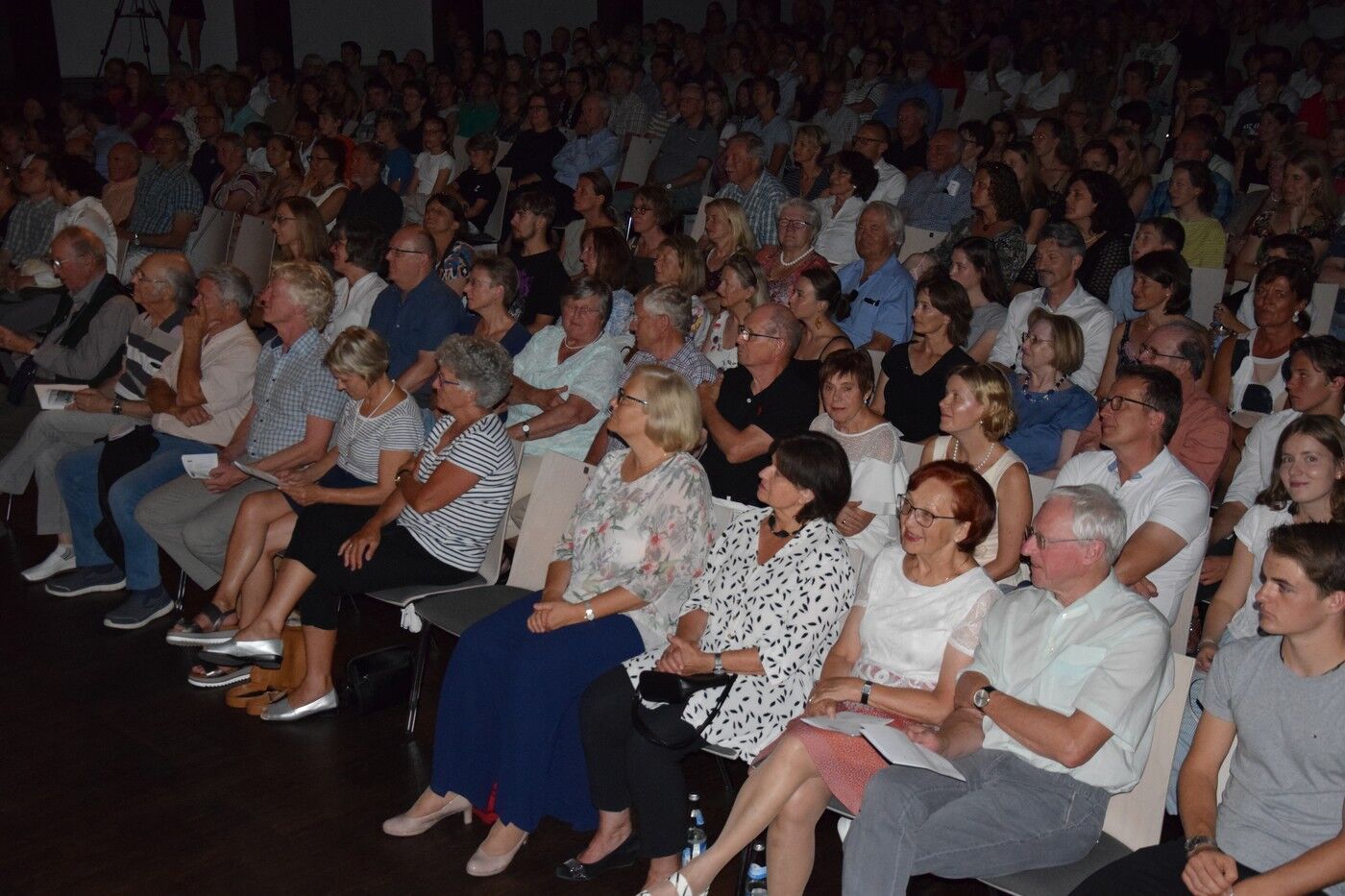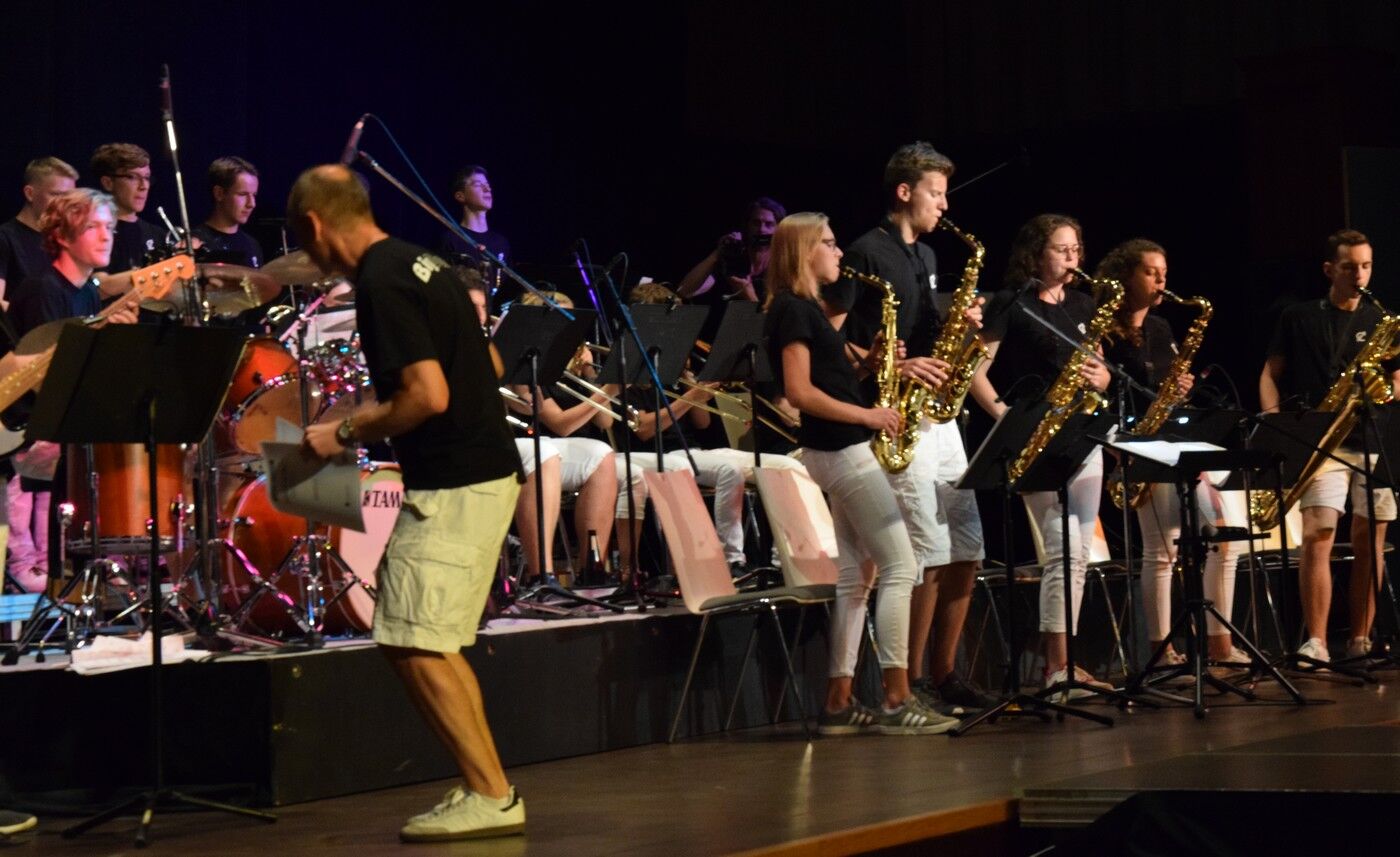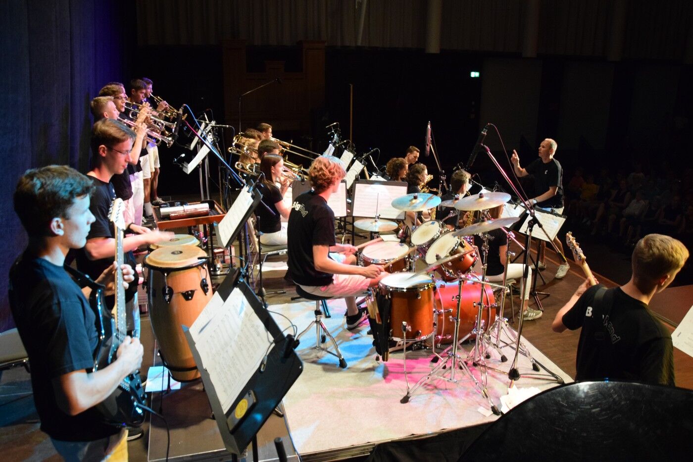 Zwei Stunden lang brachte die Camerloher-Bigband die Schulaula am letzten Donnerstagabend zum Kochen. Das war wieder Bigband-Sound vom feinsten auf professionellem Niveau mit einem abwechslungsreichen Programm, das von Latin über Swing bis hin zu Pop und Rock reichte. Lang anhaltender Applaus am Ende. Und ohne Zugaben entließen die knapp 600 Zuhörer die Bigband nicht in den lauen Sommerabend.