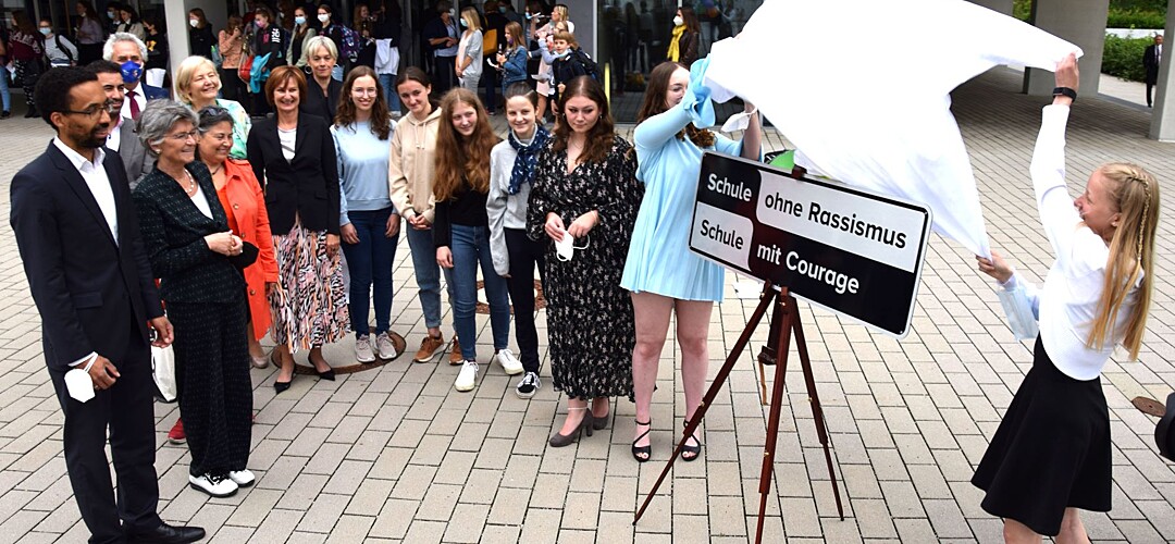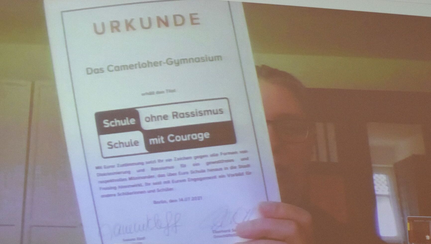 Bereits zu Jahresbeginn wurde unsere Schule ins Netzwerk „Schule ohne Rassismus – Schule mit Courage“ aufgenommen – pandemiebedingt haben wir die Feierstunden am Mittwoch, 14. Juli 2021, nachgeholt. Neben den beiden Pat*innen Frau Breit-Keßler, Vorsitzende des Bayerischen Ethikrats, und Yvo Fischer, Musiker, feierten auch Herr Petz, Landrat, Frau Mooser-Niefanger, 3. Bürgermeisterin Freisings, Herr Otto, Koordinator des SOR-Netzwerks (live zugeschaltet), sowie Vertreter*innen des Migrationsrates mit unserer Schulfamilie.