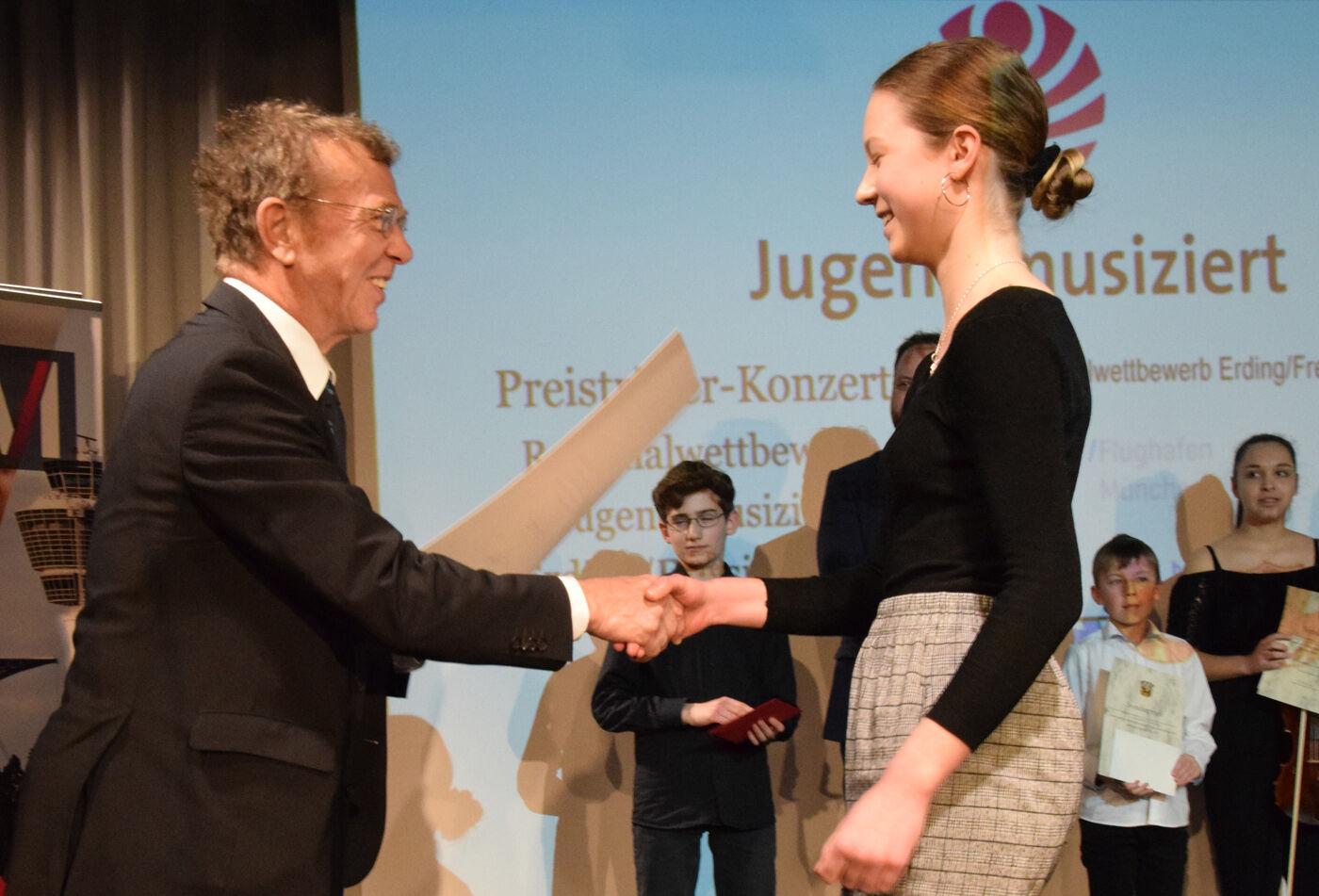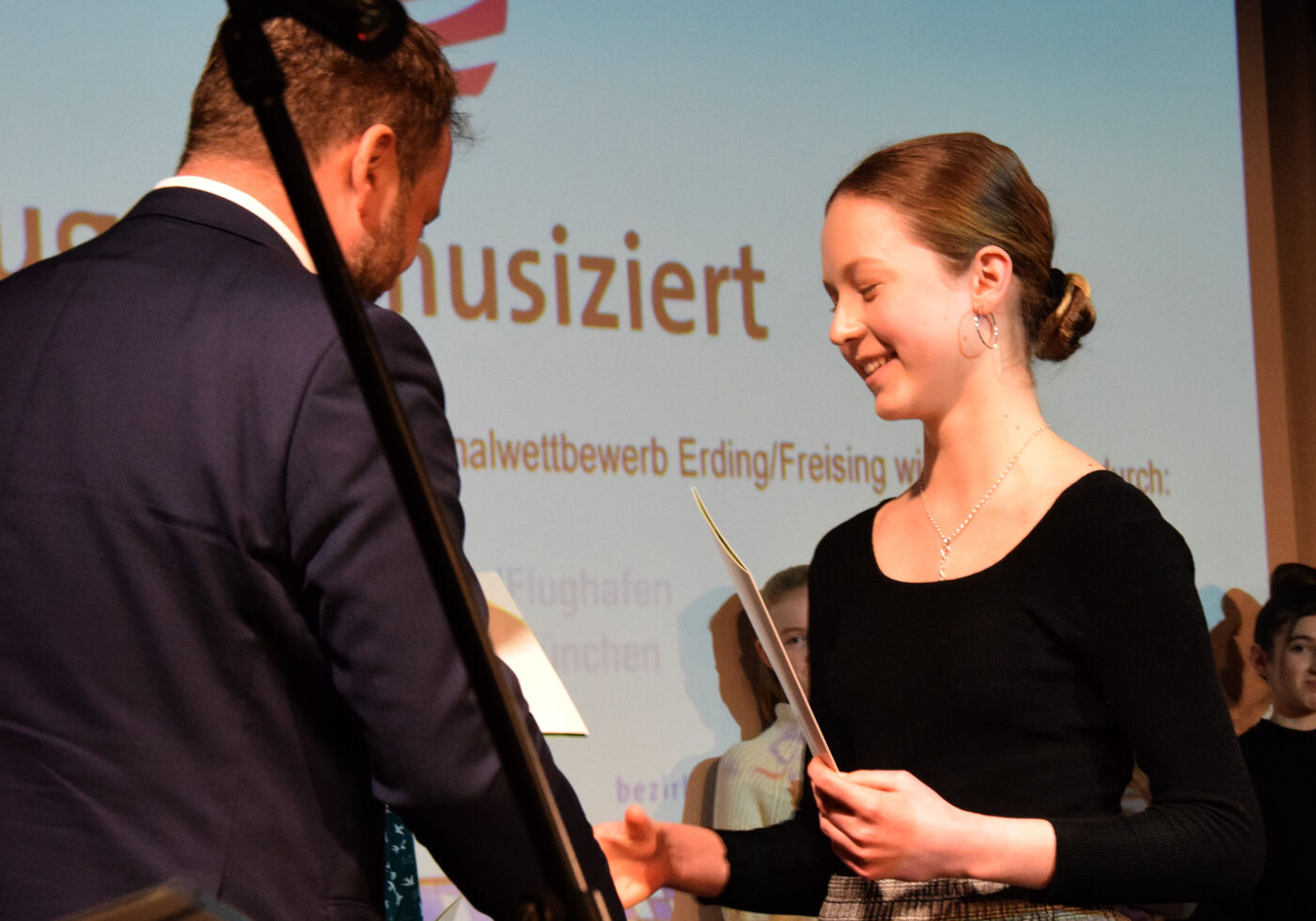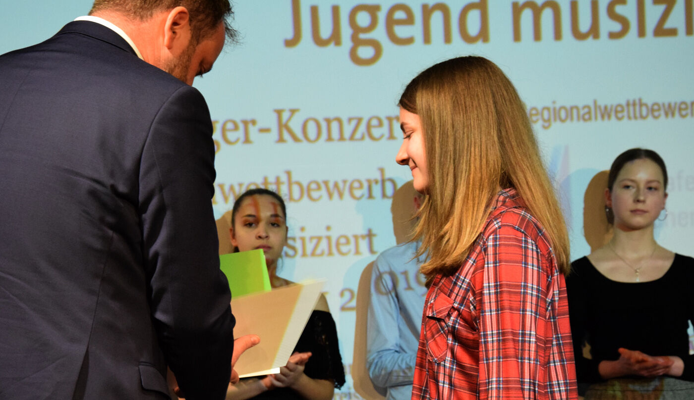 Beim Preisträgerkonzert (08.02.2019) konnten einige der jungen Nachwuchsmusikerinnen und -musiker eine kurze Kostprobe ihres exzellenten Könnens noch einmal unter Beweis stellen. Darunter auch einige Schülerinnen und Schüler des Camerloher-Gymnasiums. Schade, dass nicht alle, die eine Woche davor mit einem Preis ausgezeichnet worden waren, auftreten konnten. Aber das hätte den Rahmen des Konzerts gesprengt. Denn in den letzten Jahren hat sich der Regionalwettbewerb von Jugend musiziert rasant entwickelt. Die Qualität der Talente ist mittlerweile enorm. Das hat sich herumgesprochen. Der Pavillon der Städtischen Musikschule war beim Preisträgerkonzert bis auf den letzten Stehplatz gefüllt. Wer von den Nachwuchsmusikerinnen und -musikern nicht auftreten konnte, erhielt zumindest vor großem Publikum seine Urkunde verliehen und einige, wie beispielsweise Felix Rahimppur, Katharine Eglhuber oder Larissa Höcherl vom Camerloher-Gymnasium, einen der begehrten Sonderpreise.