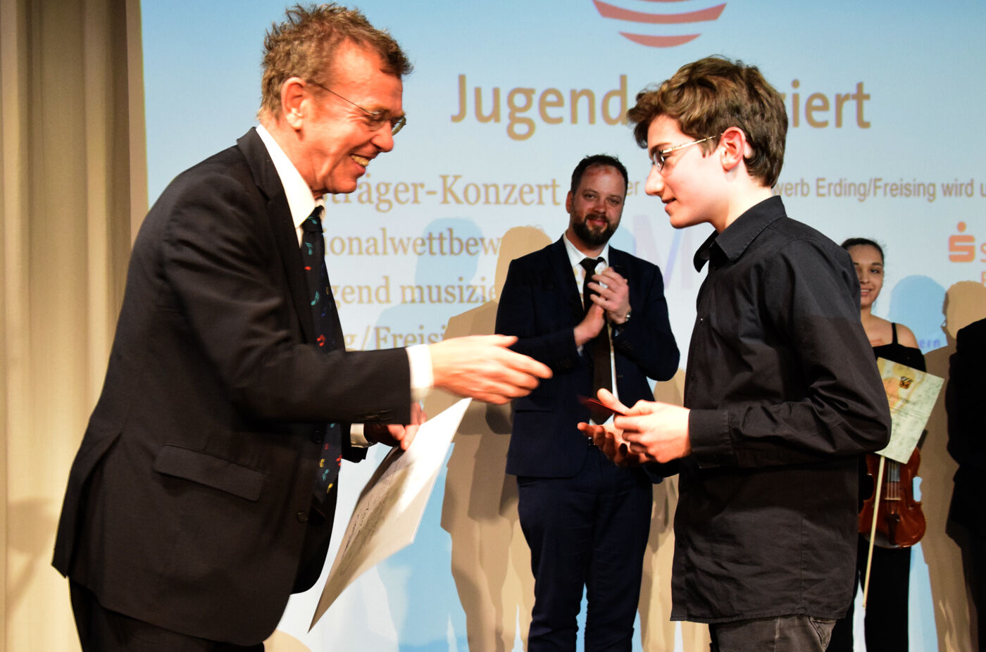Freisings Oberbürgermeister Tobias Eschenbacher gratulierte allen Preisträger und wünschte all denen, die sich für den Landeswettbewerb qualifiziert haben, alles Gute. „Ich würde mich freuen, wenn wir einige der Nachwuchsmusiker künftig auf Freisinger Bühnen oder darüber hinaus wiedersehen könnten“, so Eschenbacher. Er bedankte sich für die aufwendige Organisation des Wettbewerbs, allen voran bei den beiden Leitern der Städtischen Musikschule Freising, Martin Keeser und Odilo Zapf.