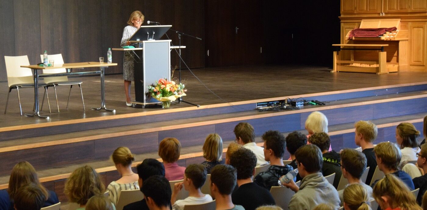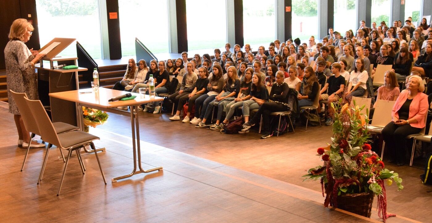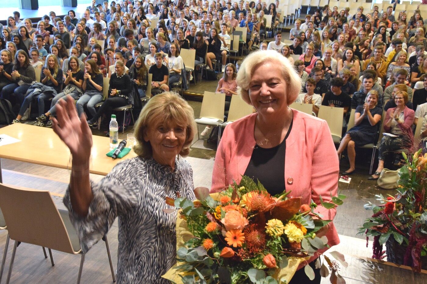 „Es ist uns eine außerordentliche Ehre, Sie Frau Knobloch heute bei uns am Camerloher-Gymnasium begrüßen zu dürfen“, freute sich Schulleiterin Andrea Bliese, die viele beeindruckende Erinnerungen mit Charlotte Knobloch verbindet, beispielsweise ihren berühmten Satz bei der Einweihung der neuen Synagoge in München: „Wir haben hier gebaut und wir gehören hier in dieses Land“.