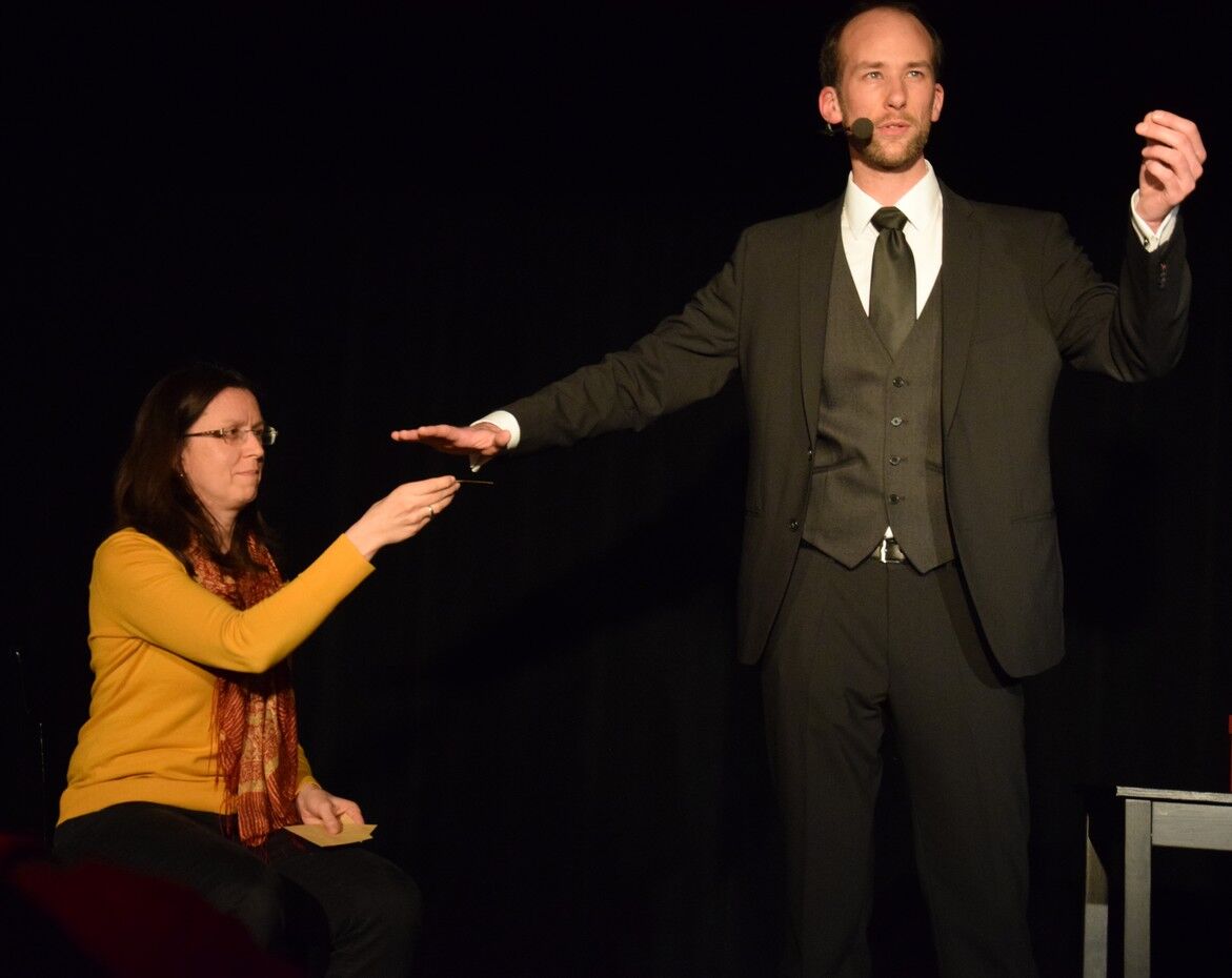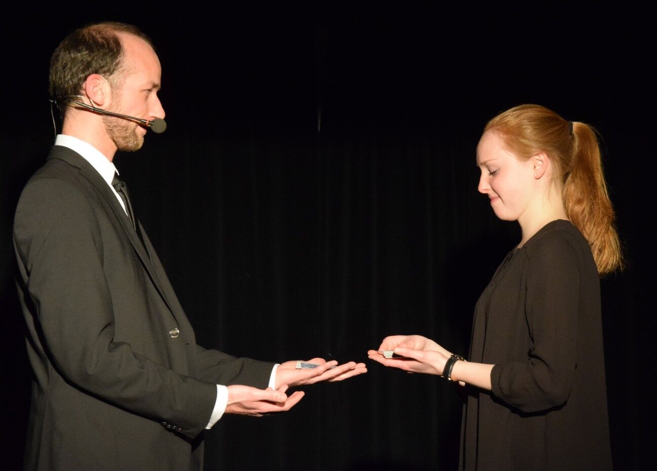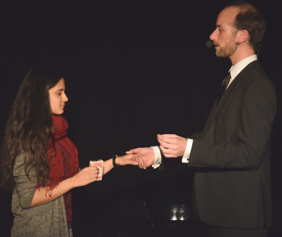 Dass Andras Maier im Kellertheater des Camerloher-Gymnasiums auftrat, ist einem Zufall zu verdanken. Englischlehrer Jürgen Plank, ein bekennender Fan der Mentalmagie, war bei einer Zaubershow in München. Sein Sitznachbar im Zuschauerraum war Andreas Maier. „Wir kamen ins Gespräch und er bot sich an, in mein W-Seminar Englisch, in dem es um den kritischen Umgang mit Informationen geht, zu kommen“, so Jürgen Plank. „Daraus entwickelte sich dann die Idee, die Show von Andreas Maier in Freising einem größerem Kreis zu präsentieren.“ Das war in der Tat eine gute Idee. So konnten sich die Zuschauer am Donnerstagabend von der Mentalmagie verzaubern lassen und hatten auf dem Nachhauseweg noch viel Gesprächsstoff. sp