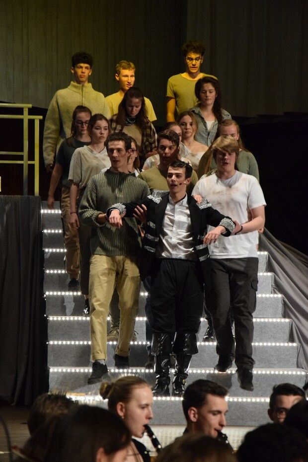 So ein großartiger Abend kann nur funktionieren, wenn alle im Team perfekt zusammenarbeiten. Ein Musterbeispiel im Schulalltag für die in der heutigen Zeit wichtigen Bereich Teamfähigkeit und soziale Kompetenz. Neben den rund dreihunter Mitwirkenden waren auch zahlreiche Lehrkräfte tatkräftig mit am Werk: Robert Leutner (Regie), Gabi Forster (Choreographie), Christian Weller (Kulissen und Ausstattung), Gunther und Birgit Brennich sowie Verena Egger (Einstudierung der Solisten und Chöre), Sebastian und Marianne Brand, Gunther Fendler und Till Neumann (Orchestereinstudierung).