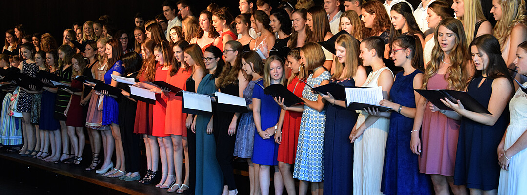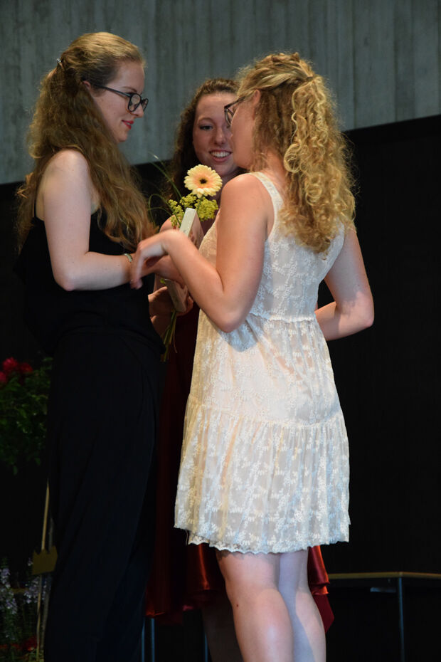 Die große Verleihung der Abiturzeugnisse begann am Freitagmittag sehr emotional. Die 115 Abiturientinnen und Abiturienten zogen in die sehr festliche geschmückte Aula ein und stimmten die vielen Besucher mit ihrem ersten Abisong auf Feierlichkeiten ein. Leonie Reicheneider führte danach charmant, eloquent, erfrischend spontan und professionell durch den Nachmittag.