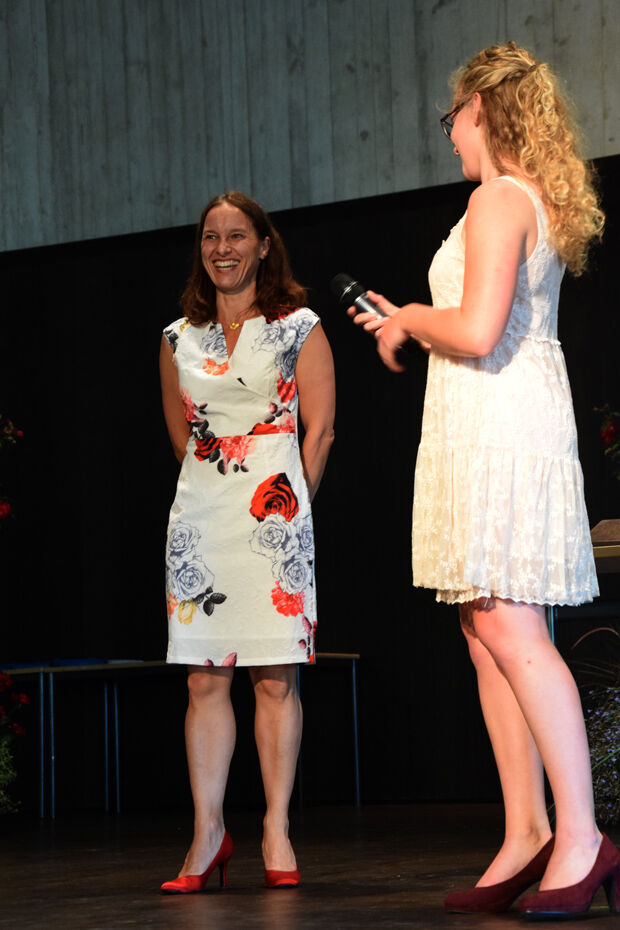 Schulleiterin Andrea Bliese zeigte sich sichtlich gerührt: „Was für ein Tag! Was für eine Stimmung!“ Weil heuer Luther-Jahr ist, lag es für Schulleiterin nahe, die Entlassung der Abiturientinnen und Abiturienten in Beziehung zu den Reformatoren zu setzen. Die Bildung des Menschen, die Schule und vor allem das Musische und Ästhetische seien für Luther sehr wichtig gewesen, erinnerte Bliese und zitierte ihn: „Wer die Kunst (Musisches) kann, wird anderes auch können.“ Andrea Bliese ist sich deshalb sicher, dass die Camerloher-Absolvia bestens gewappnete ihre Zukunft angehen kann. Bliese gab den jungen Erwachsenen mit auf ihrem neuen Lebensweg, in der medialen Welt nicht einfach nur alles nachzuplappern, was andere sagen, sondern mutig und eigenverantwortlich sein Leben in die Hand zu nehmen. Sie bedankte sich bei der Absolvia für die „vielen schönen Erlebnisse, die wir mit Euch hatten“. Sie bedankte sich auch bei den Eltern, bei den Lehrkräften und vor allem auch bei Oberstufenkoordination Silvia Betz, die die Absolvia über drei hinweg intensiv und einfühlsam begleitet hatte.