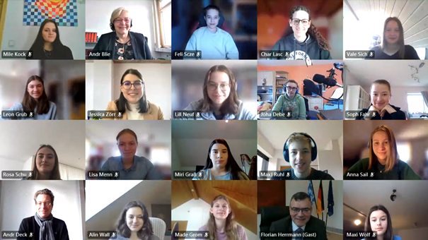 Im digitalen Austausch erhielten die Zehntklässlerinnen und Zehntklässler interessante Einblicke in die Aufgabenfelder und in den Arbeitsalltag eines Politikers in Regierungsverantwortung. Im angeregten Gespräch interessierten sich die Zehntklässlerinnen und Zehntklässler auch dafür, ob und wie sich der politische Alltag auf Grund der Pandemie für den Staatskanzleichef verändert hat. Zudem wollten sie wissen, wie es ein Abgeordneter schafft, stets auf aktuelle politische Themen vorbereitet und “up to date” zu sein. Hier informierte Dr. Florian Herrmann darüber, dass sich die Parlamentsarbeit hauptsächlich auf Fachausschüsse stützt und die Fraktionen ihre spezialisierten Abgeordneten als Experten hätten. Abschließend betonte er, auch mit Blick auf die aktuelle Corona-Lage, dass Respekt, Toleranz und Kompromissfähigkeit zentrale Werte im politischen Handeln sind, um für alle Bürgerinnen und Bürger stets gute Lösungen zu finden.