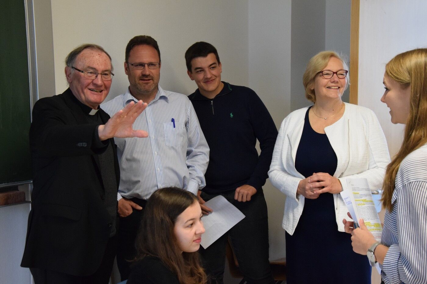 Trotz Weihnachtsferien verging nicht einmal ein Monat, bis das Antwortschreiben von Kardinal Marx den Kurs erreichte, flankiert von einem Telefonat seiner theologischen Referentin mit Schulleiterin Andrea Bliese. Der Kardinal ließ ausrichten, dass zwar der übervolle Terminkalender ein Treffen in absehbarer Zeit nicht zulasse, er aber sehr beeindruckt gewesen sei vom Engagement des Kurses; deshalb habe er Weihbischof Dr. Bernhard Haßlberger gebeten, zu einem Gespräch ins Camerloher-Gymnasium zu kommen, über das er sich dannpersönlich unterrichten lasse.