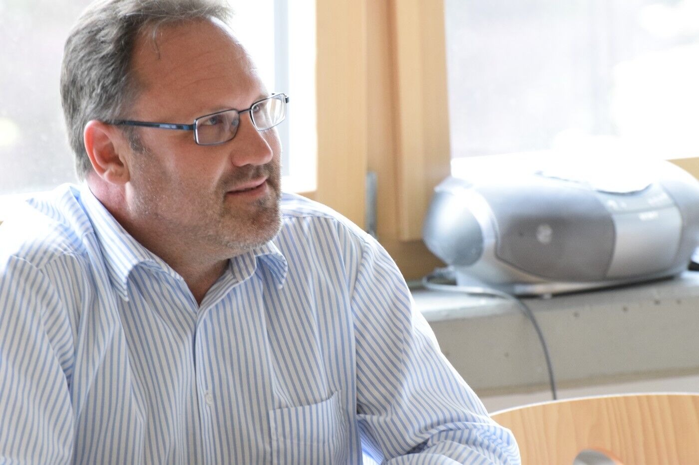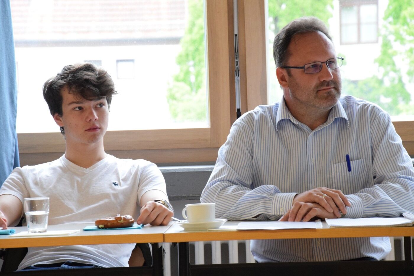 Für den Weihbischof der Region Nord, der in Freising wohnt, war es Heimspiel und Premiere zugleich: Gespräche mit Schulklassen führe er zwar öfter, aber am Camerloher sei er aus diesem Anlass noch nie gewesen, bekannte er eingangs. Bei einem zweiten Frühstück mit Kaffee, Butterbrezen und selbstgemachtem Kuchen waren die beiden Moderatoren Maria Ziegeltrum und Gabriel Brand für’s „warming up“ zuständig. So musste der sympathische Geistliche Sätze vollenden wie „Ich bin Priester geworden weil …“, „Mein Glaube hat sich besonders bestätigt, als …“ oder „Wenn ich Papst wäre, würde ich …“. Der Bischof nahm in Anwesenheit der Schulleiterin Andrea Bliese kein Blatt vor den Mund. Er erzählte von seiner eigenen Berufung, die er schon als Achtklässler verspürte, dass er in seiner Freizeit gerne liest, Ski fährt und wandert, und nicht zuletzt von besonderen Herausforderungen in seiner 42-jährigen Zeit als Priester und auch als Bischof. Es setze ihm besonders zu, wenn Konflikte in Gemeinden nicht lösbar scheinen, so der Weihbischof, und auch er selbst würde sich manchmal schnellere Veränderungen in der Kirche wünschen. Es gelang ihm, den jungen Leuten zu vermitteln, warum sich eine jahrtausendalte, alle Kontinente umgreifende Institution nicht so schnell weiterentwickeln könne, wie sich viele das wünschen. Die Kirche sei wie ein großer Tanker, der nur langsam seine Richtung ändern könne, ohne in‘s Schlingern zu geraten.