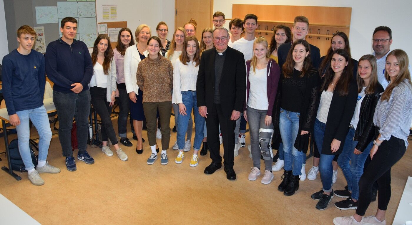 Der Weihbischof sieht durchaus Argumente, die für das Priestertum der Frau sprechen, und kann auch nachvollziehen, warum künstliche Empfängnisverhütungsmittel in bestimmtem Umfang z.B. zur Eindämmung von Geschlechtskrankheiten sinnvoll sein können. Haßlberger brachte zugleich die Schülerinnen und Schüler sehr zum Nachdenken, als er darauf hinwies, dass es keine einfachen Lösungen in diesen Fragen gebe. Er ermutigte jedoch die jungen Erwachsenen, sich weiter auch kritisch zu engagieren und mit Blick auf die bereits geschehenen Veränderungen gerade in den letzten Jahren und in der derzeitigen Diskussion etwa bei der Bewegung Maria 2.0 mit Optimismus in die Zukunft zu schauen.