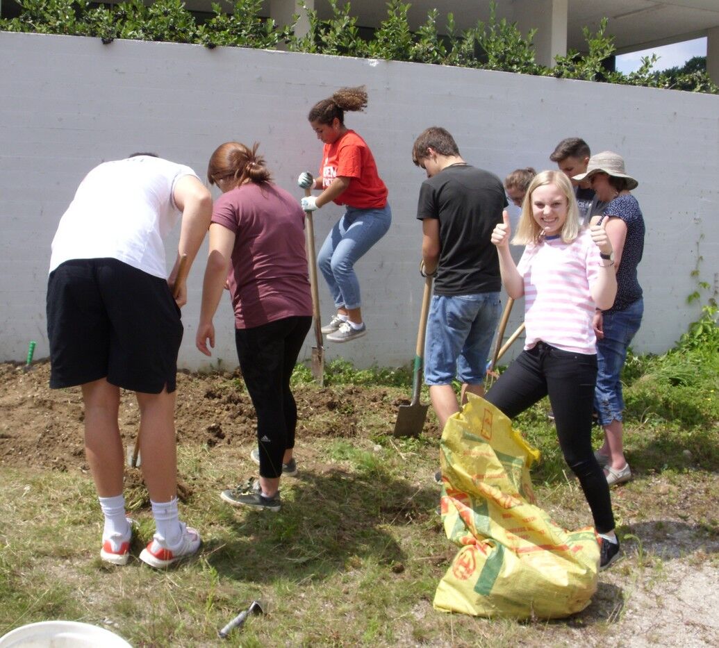 Unter dem Leitfaden „Urbanes Gärtnern“ schritten die Gartenmeisterinnen und -meister des P-Seminars zur Tat – ihre Absicht: Beton und Natur zu vereinen.