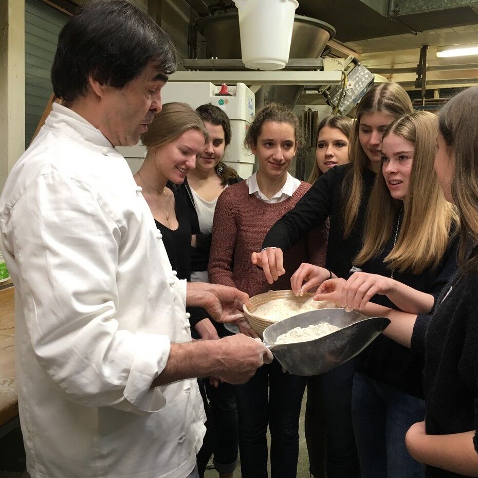 Nach dem ersten Halbjahr P- Seminar „Organisation eines Backworkshops“ unter der Leitung von Frau Betz und Frau Hemmer mit Referaten zu den chemischen Vorgängen des Backens und einer „Praxisarbeit“ in Form eines Kuchens oder Gebäcks als Anschauungsobjekt und vor allem als Kostprobe hat jeder schon die eine oder andere Erfahrung mit dem Backen zuhause gemacht. Und wenn diese Versuche schon bei einem einzigen Kuchen eine organisatorische Herausforderung darstellen können, stellt sich die Frage, wie denn die professionelle Version des Ganzen aussieht.