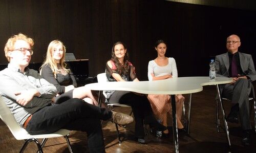 Beim Auftaktkonzert zum 4. Freisinger Meisterkurs konnten sich die vielen Musikfreunde in der Camerloher-Aula nicht nur an den exzellenten Darbietungen der vier Nachwuchsmusiker erfreuen, sondern sie erfuhren auch viel Interessantes und Wissenswertes. Zusammen mit Prof. Ulrich Vogel erzählten, Felicia Bulenda, Viona Schwaiger, Benedikt Eder und Raphaela Gromes über ihren Werdegang und beantworteten Fragen aus dem Publikum.