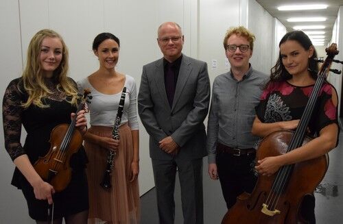 Die vier Nachwuchsmusiker, Felicia Bulenda (Absolventin des Josef-Hofmiller-Gymnasiums), Viona Schwaiger (Absolventin des Camerloher-Gymnasiums), Benedikt Eder (Absolvent des Camerloher-Gymnasiums) und Raphaela Gromes (Absolventin des Camerloher-Gymnasiums) präsentierten beim Auftaktkonzert (28.09.2016) Ausschnitte aus ihrem vielfältigen Repertoire. Felicia Bulenda an der Klarinette spielte u.a. ein Stück von Carl Maria von Weber. Viona Schwaiger (Violine) hatte ein Stück von Bach mitgebracht. Benedikt Eder (Bariton) präsentierte Lieder von Robert Schumann. Und die Cellistin Raphaela Gromes hatte sich ebenfalls ein Werk von Robert Schumann ausgesucht. Prof. Vogel begleitete die vier jungen Künstler. Das war sehr professionell. Prof. Vogel hatte nur E-Mail-Kontakt mit den Nachwuchsmusikern und probte dann kurz vor dem Konzert einmal mit ihnen.