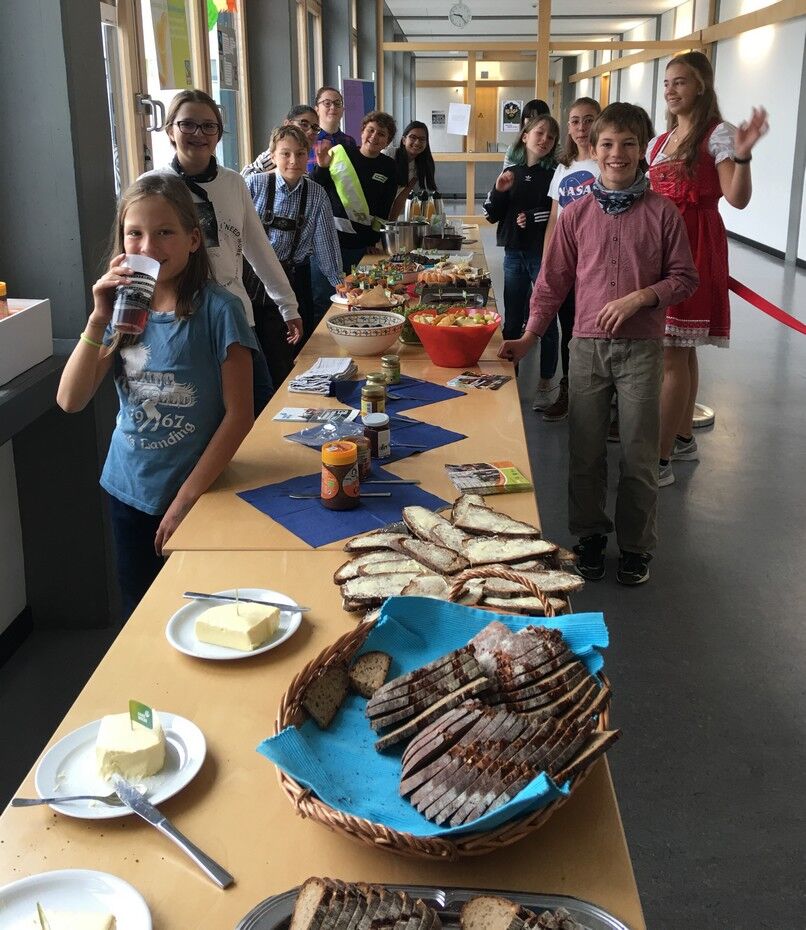 Da wir in diesem Schuljahr v.a. das Thema Nahrungsmittel als Rahmenthema unserer Arbeit gewählt haben, war unser Büfett ein idealer Einstieg. Um so schöner, da es auch noch mit dem Camerloher Dirndl- und Trachtentag zusammenfiel!