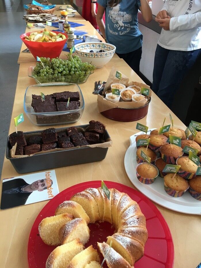 Auch dieses Schuljahr hat wieder mit Müsli, fairen Brotaufstrichen, leckerem Kuchen und regionalen Produkten begonnen. Der AK Fair Trade lud wieder zum fairen Back-to-School-Pausenbüfett, diesmal um die nun schon 3. Titelerneuerung als Fairtrade-Schule zu feiern.
