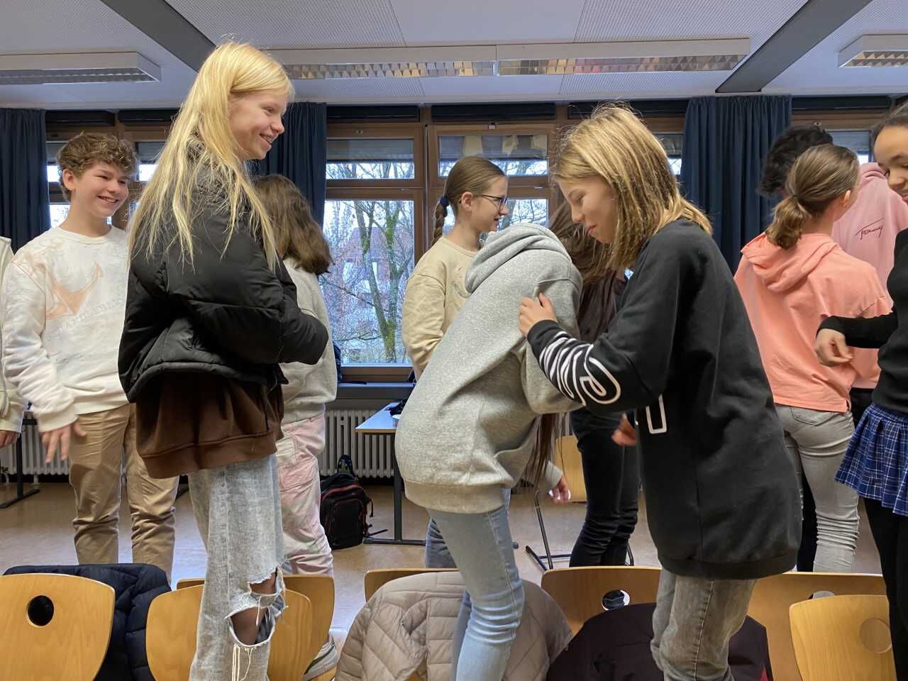 Dieses konnten wir nach der langen Corona-Pause am Mittwoch, den 30. November 2022 wieder zunächst in den Klassen 7a und 7b in Zusammenarbeit mit den Jugendschutzbeamten der Polizei Freising, mit Christina Bauer und ihrem Kollegen Herrn Mayer, durchführen. In einer hinführenden Doppelstunde standen Übungen zum klassengemeinschaftlichen Miteinander im Zentrum. Dieser Block wurde von der Schulpsychologin Sophia Thaller und der Beratungslehrerin Silke Hatzinger übernommen. Bei den Themen zur Selbstbehauptung und Zivilcourage waren Expertise und Erfahrungen der Jugendschutzbeamten gefragt. Für die Schülerinnen und Schüler sind nicht nur die Übungen zu diesen Themen spannend, sondern insbesondere auch die Erfahrensberichte der Jugendschutzbeamten über ihre Arbeit mit Jugendlichen.