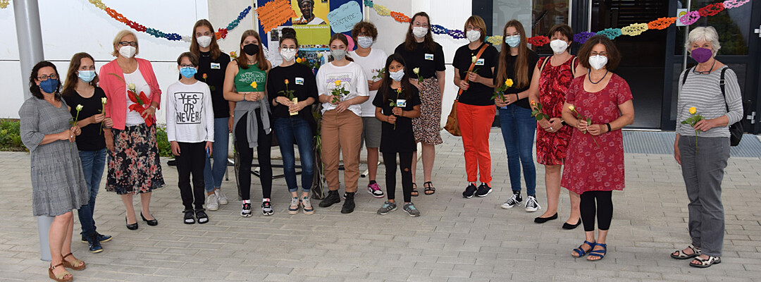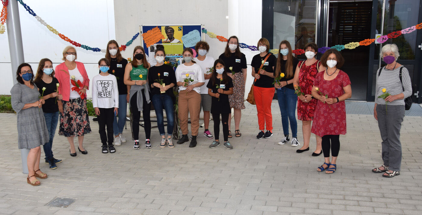 Anna Hannus (Q11), Sprecherin des AK Fair Trade, erinnerte in ihrem Rückblick auf all die Schwierigkeiten, die mit der Anschaffung des Fairomaten verbunden waren. Der AK habe jedes Jahr eine Martins-Gans-Aktion, ein bis zwei Kuchenaktionen, ein faires Frühstück und vieles mehr organisiert, um das nötige Geld für den Fairomaten einzunehmen. „Zudem unterstützten uns die Stadt Freising, unser Elternbeirat, die Familien Göls und Hannus sowie Frau Bliese, sodass wir am Ende des letzten Schuljahres den Fairomaten bestellen konnten“, so Anna Hannus. „Es war ein Herzensprojekt, das jetzt in Erfüllung gegangen ist und dafür wollen wir uns besonders bei unserer tollten AK-Leiterin Frau Görlich-Kunert bedanken.“