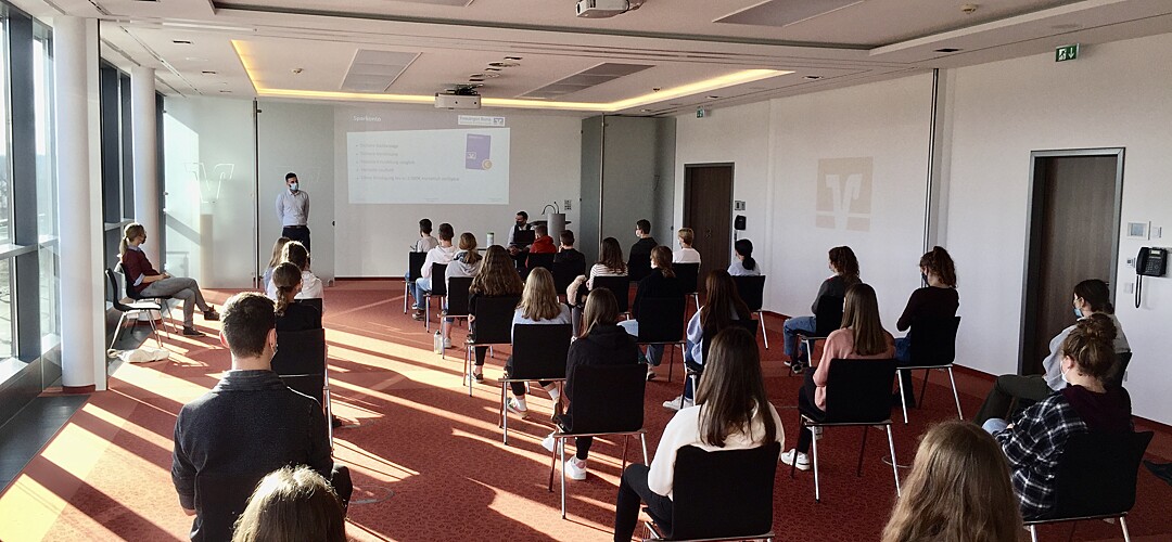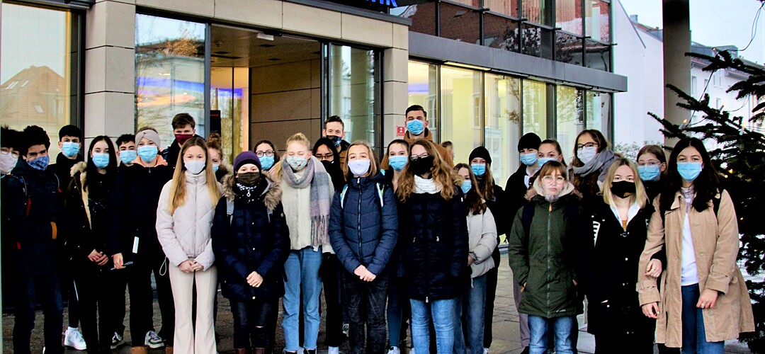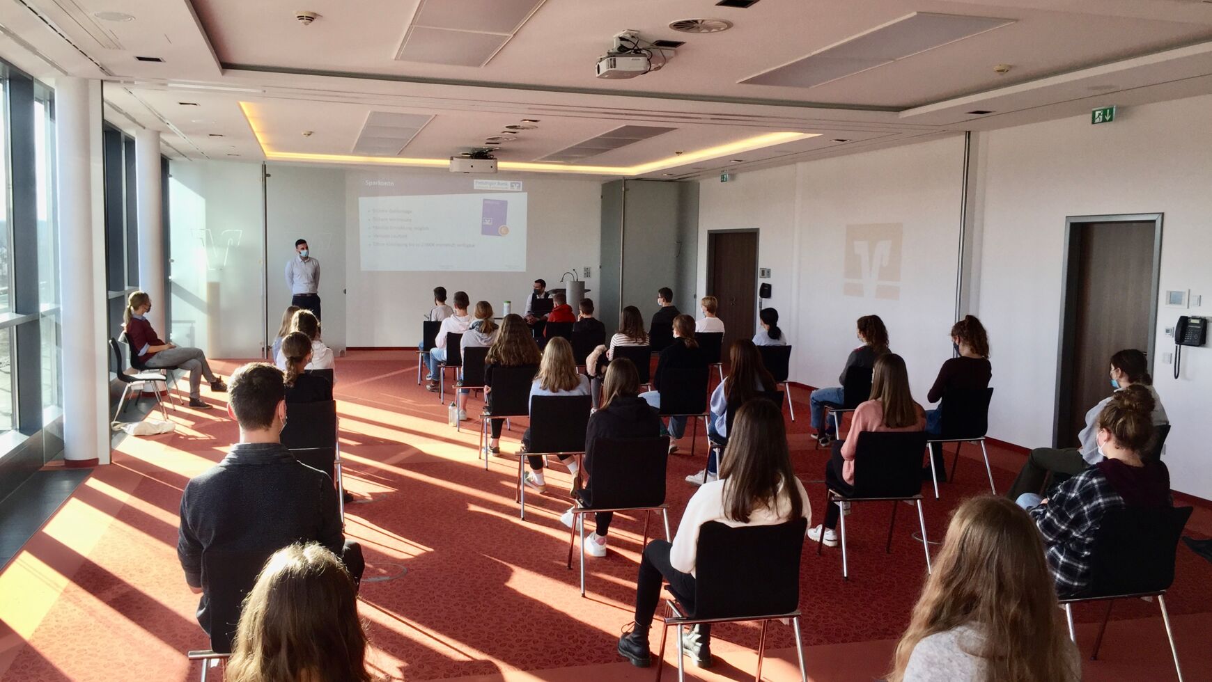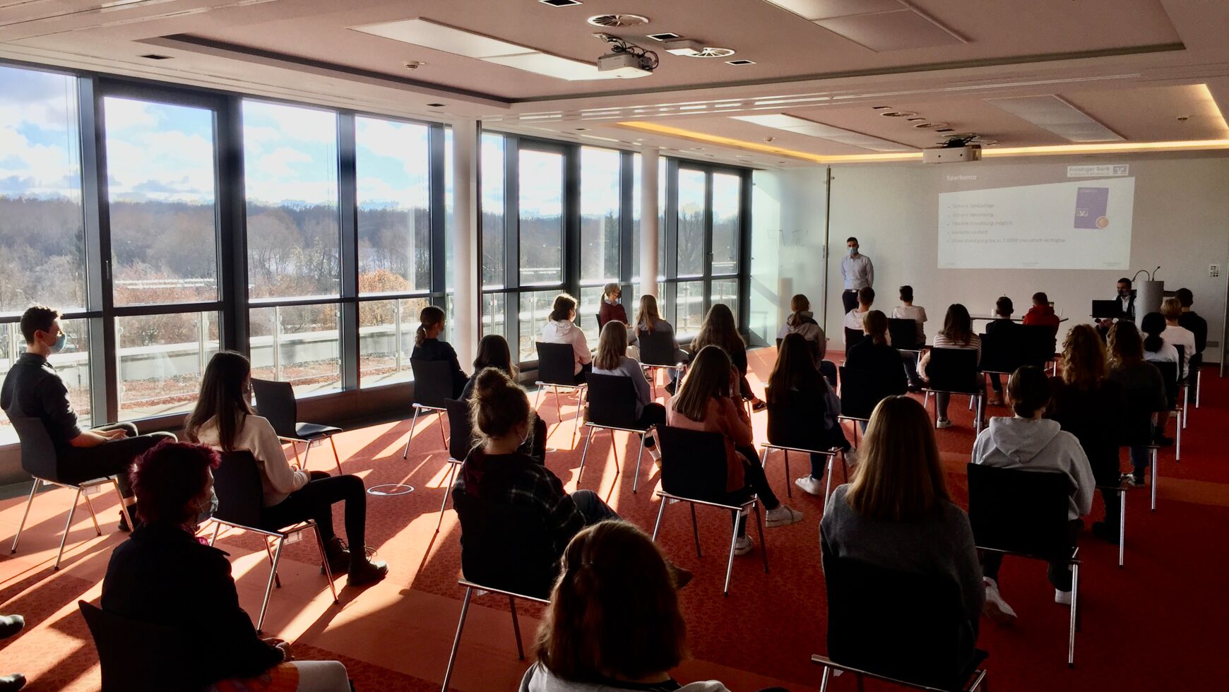 In zwei Durchgängen wurden die Klassen jeweils von Frau Bianca Krumpholz (Abteilung strategisches Marketing) begrüßt und in den im obersten Stockwerk des Hauptgebäudes liegenden Vortragsraum gebracht.