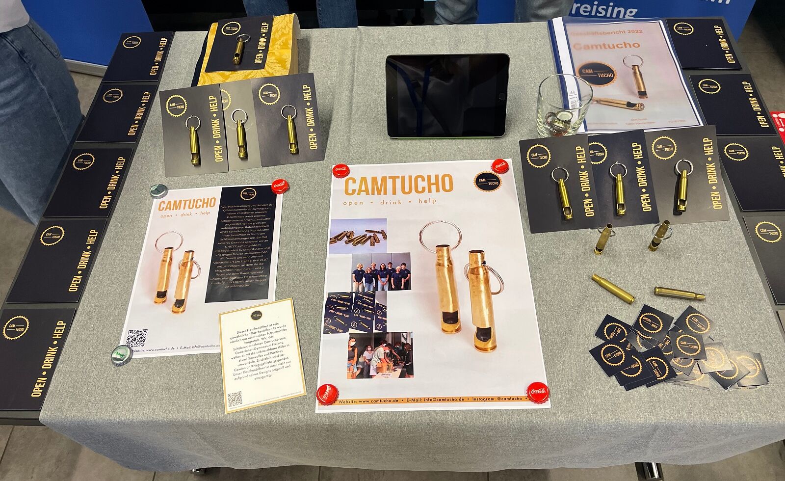 Die letzte Schulwoche für die Q12 begann für das Team des (ehemaligen) P-Seminars Camtucho mit einer erlebnisreichen Reise nach Köln. Vom 20. bis zum 22. Juni fand dort der diesjährige JUNIOR-Bundeswettbewerb statt, zu dem die 16 besten Schülerunternehmen Deutschlands eingeladen waren. Durch den ersten Platz beim digitalen JUNIOR-Landeswettbewerb am 16. Mai hatte sich Camtucho mit der Geschäftsidee, Flaschenöffner aus gebrauchten Patronenhülsen zu produzieren und diese sehr erfolgreich zu vermarkten, für eine Teilnahme qualifiziert.