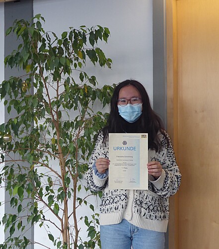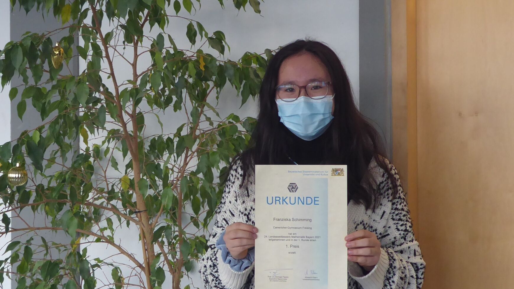 Franziska Schimming erzielte, wie auch bereits in den beiden Jahren davor, einen ersten Platz und erreichte so die zweite Runde. Sie freute sich wieder über eine Urkunde und einen Buchpreis. Zudem erhielt sie die Aufgaben für die zweite Runde, bei denen es nun wieder bis zum 3. Februar heißt: Tüfteln, tüfteln, tüfteln…